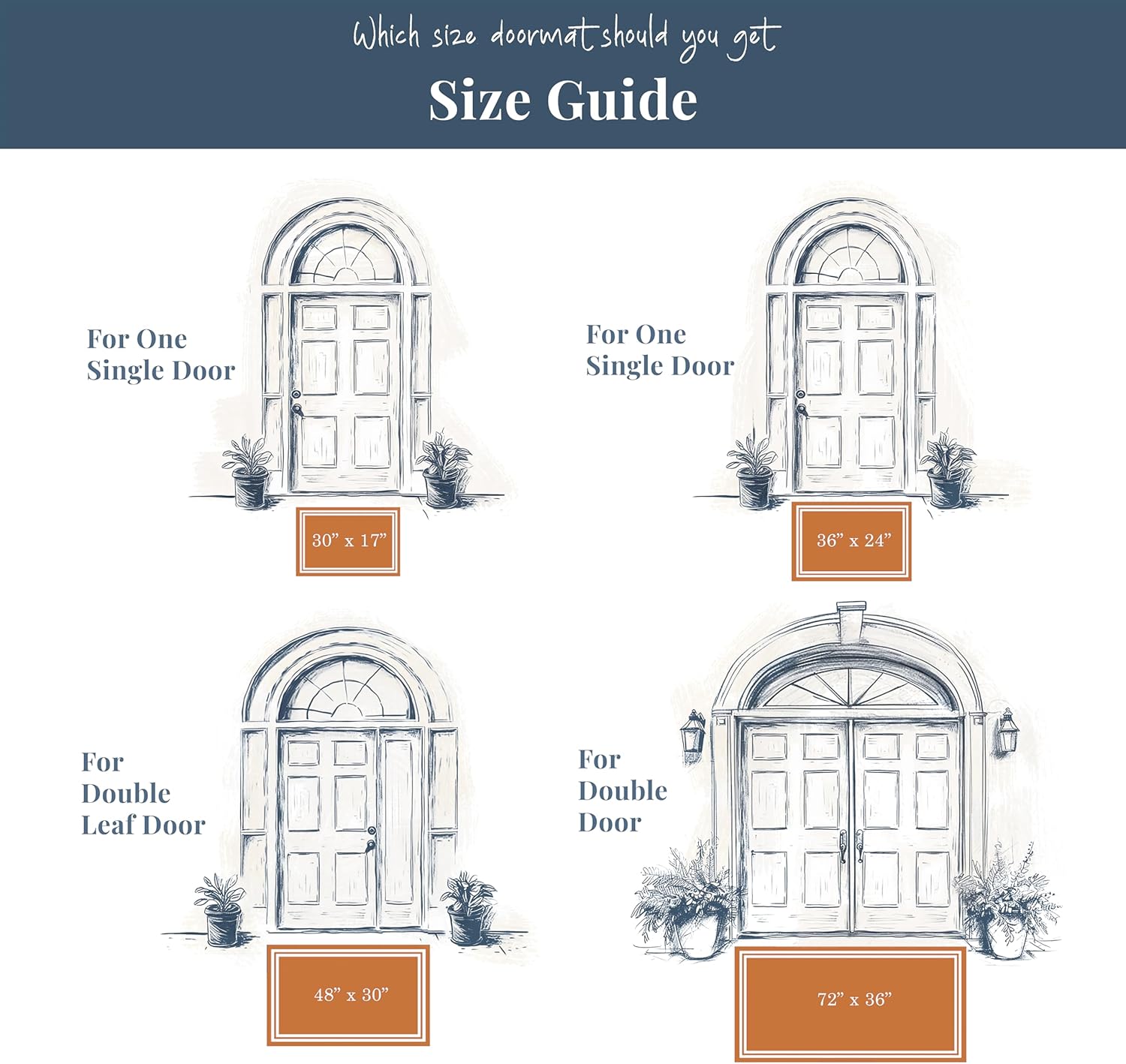 - The Perfect Size - Measuring 36 x 24 inches, our welcome mat outdoor entrance rug is just the right size for any entryway. It’s big enough to accommodate two people standing side by side, yet small enough to fit in front of a single door without overwhelming the space. It’s the ideal front door mat outside entrance rug for any home or office.