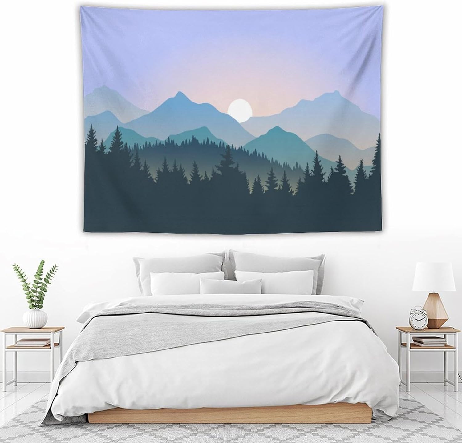 HZOHNAGO Mountain Tapestry Forest Mountain Sunrise Pattern Printed Wall Tapestry Wall Hanging for Bedroom Living Room Dorm 80" W x 60" H