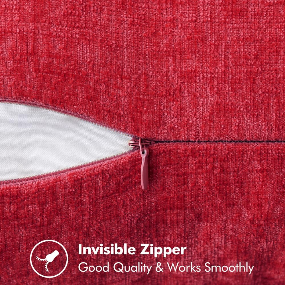 MIULEE Pack of 2 Christmas Pillow Covers 20x20 Inch Red Farmhouse Decorative Throw Pillow Covers with Stitched Edge Soft Chenille Solid Dyed Couch Pillow Covers for Sofa Bed Living Room