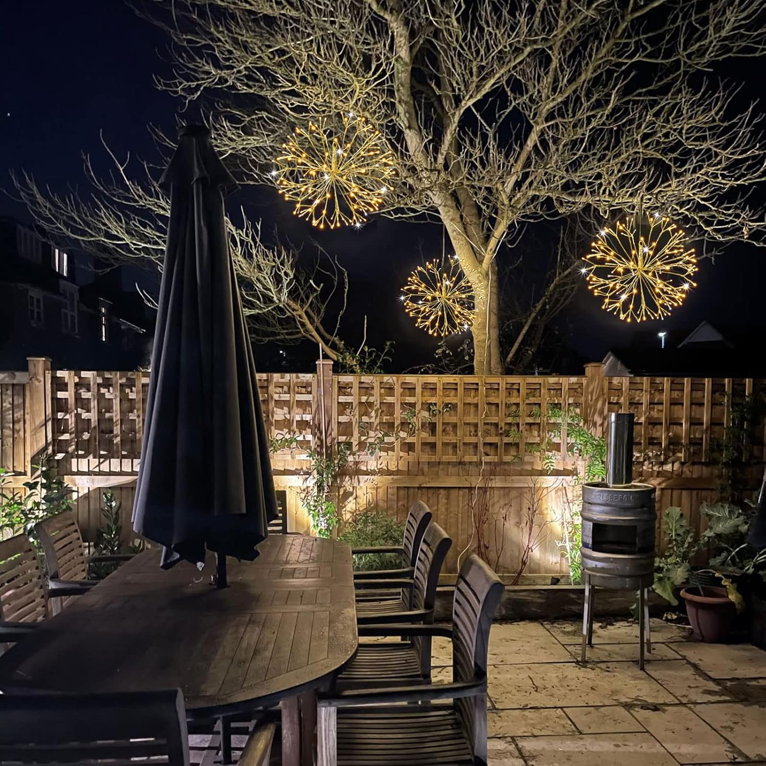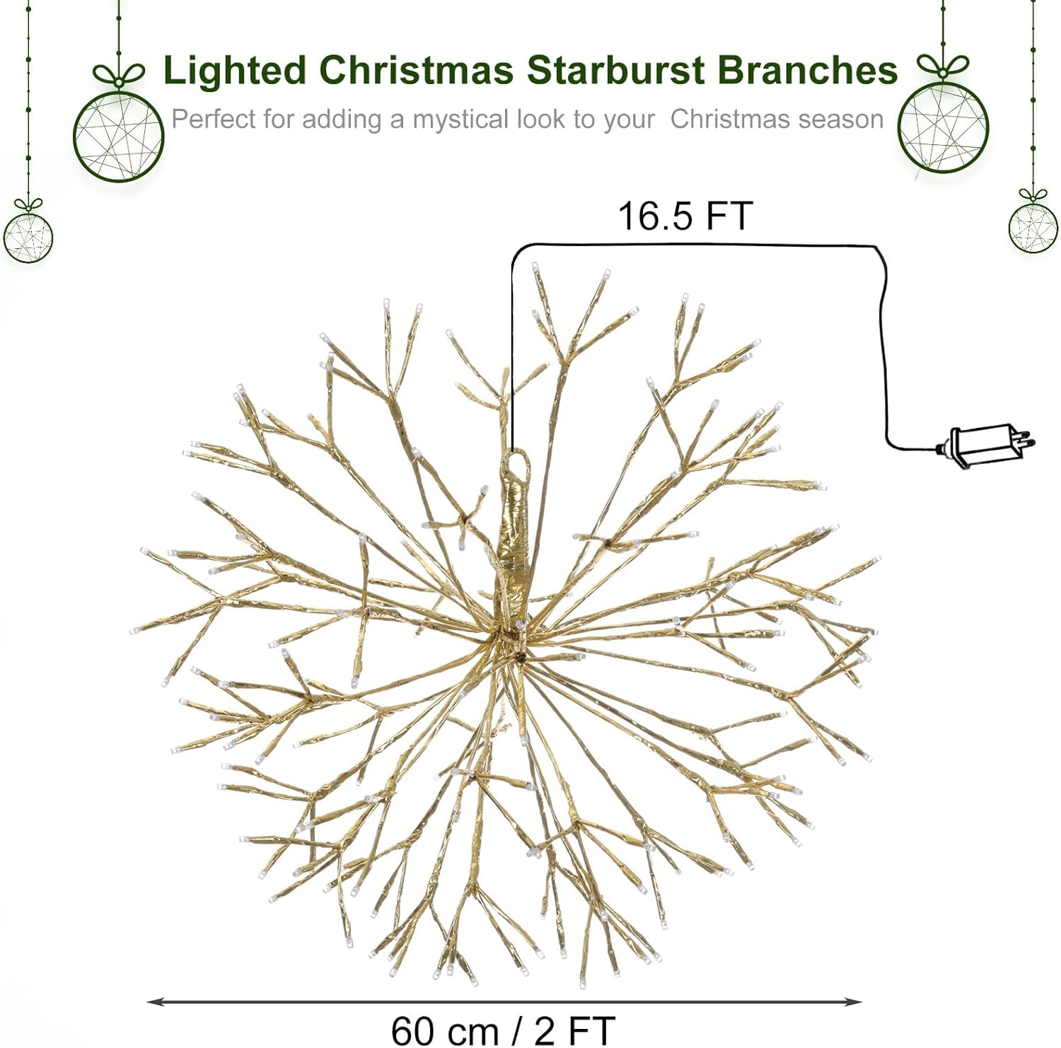 Christmas led Sparkle Ball Hanging Outdoor décorations -Haning Twig Ball,Snowflake Ornament Lights Indoor Outdoor Festive Holiday Décor 24Inch (Warm White)