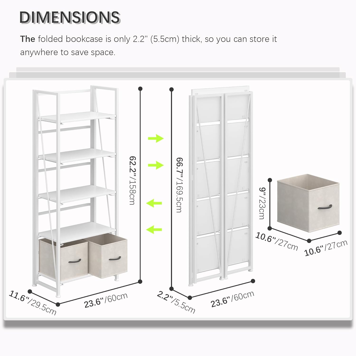 - 【No Tools Are Needed Bookshelf 】No screws need to be installed, and you can say goodbye to complicated installation steps. The foldable design without installation makes it possible for you to completely free your hands. You can unfold and fold up the bookshelf in just 30 seconds