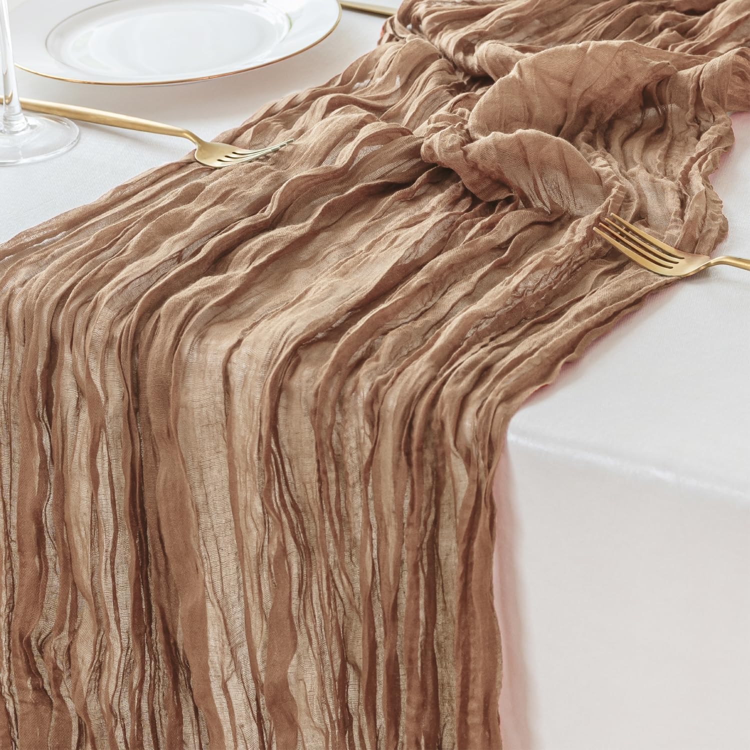 - 【Premium Fabric】Crafted from cheese cloth with manual dying process, soft to the touch and the fabric make the table runner sheer enough to sway in the wind. Pleating craft, bring a vintage-rustic style to your table decor, heighten the elegance of your banquet or wedding tables.