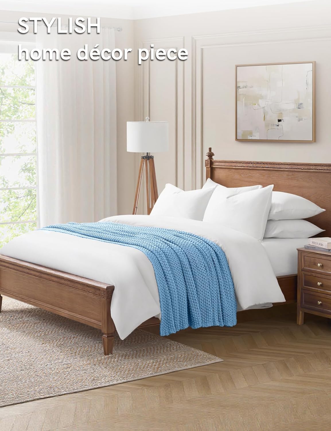YnM Chunky Cotton Knit Throw Blanket, Cable Knit Throws for Bed Couch Sofa, Comfy & Relaxing, Decorative Piece for Farmhouse Modern Boho Rustic Scandinavian Chic Vibe, Aqua Blue 50x60 Inches