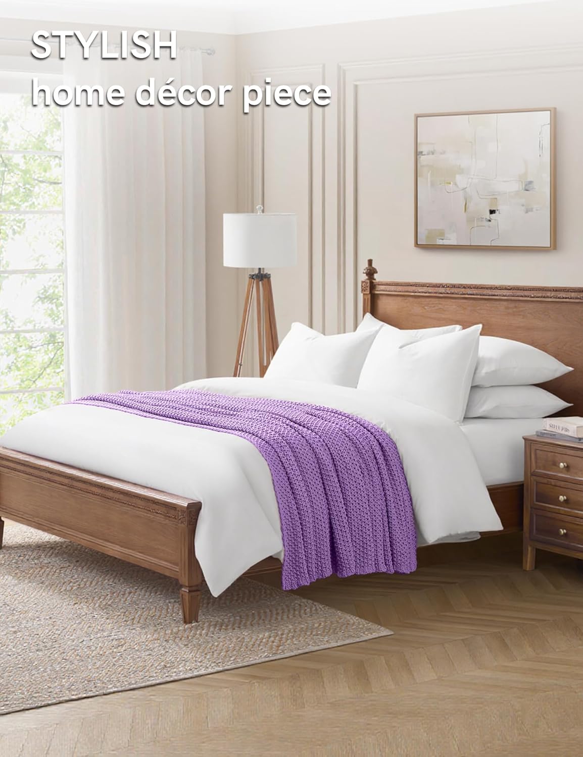 YnM Chunky Cotton Knit Throw Blanket, Cable Knit Throws for Bed Couch Sofa, Comfy & Relaxing, Decorative Piece for Farmhouse Modern Boho Rustic Scandinavian Chic Vibe, Lilac Purple 60x80 Inches