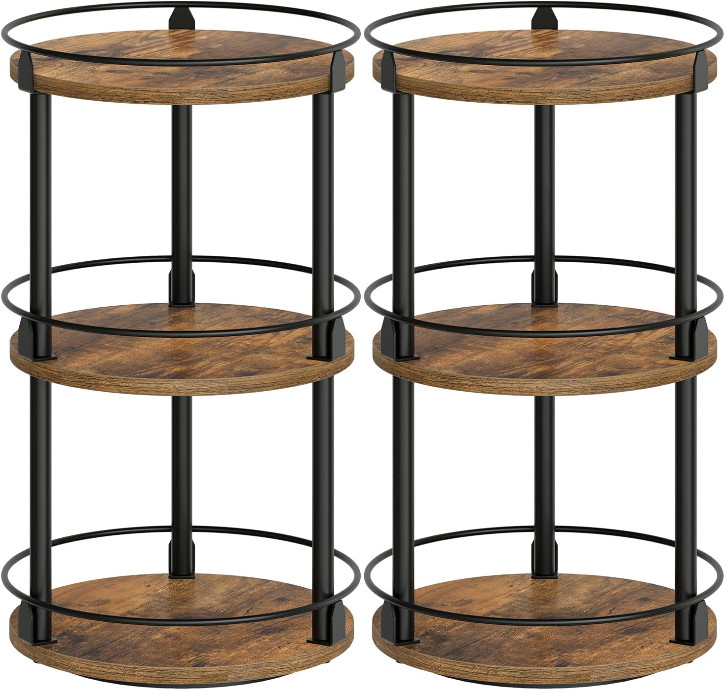 Spice Rack, Set of 2 Lazy Susan Organizer, 3-Tier Turntable Organizer For Cabinet, Compact and Versatile, for Kitchen Countertop, Rustic Brown SR23L2BR