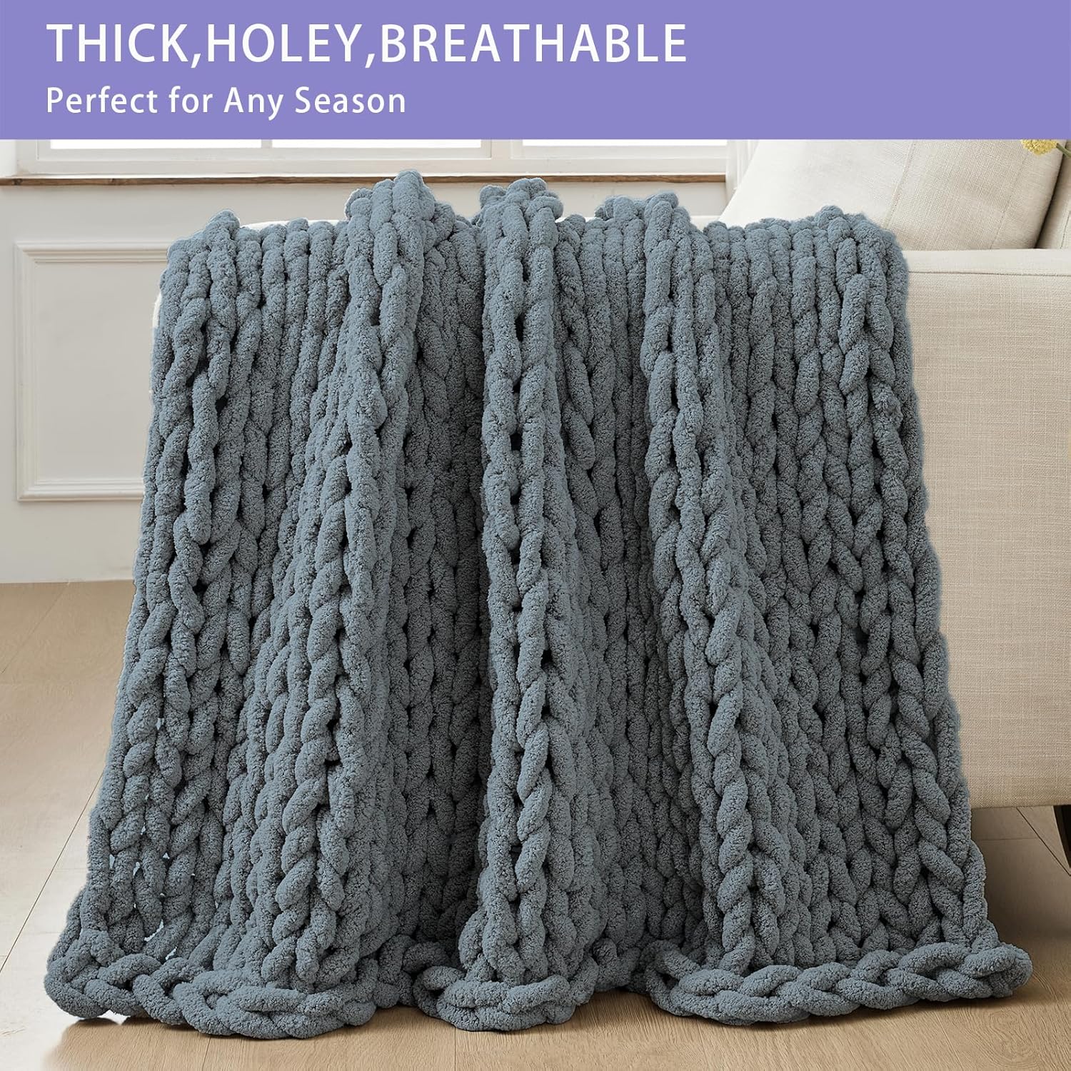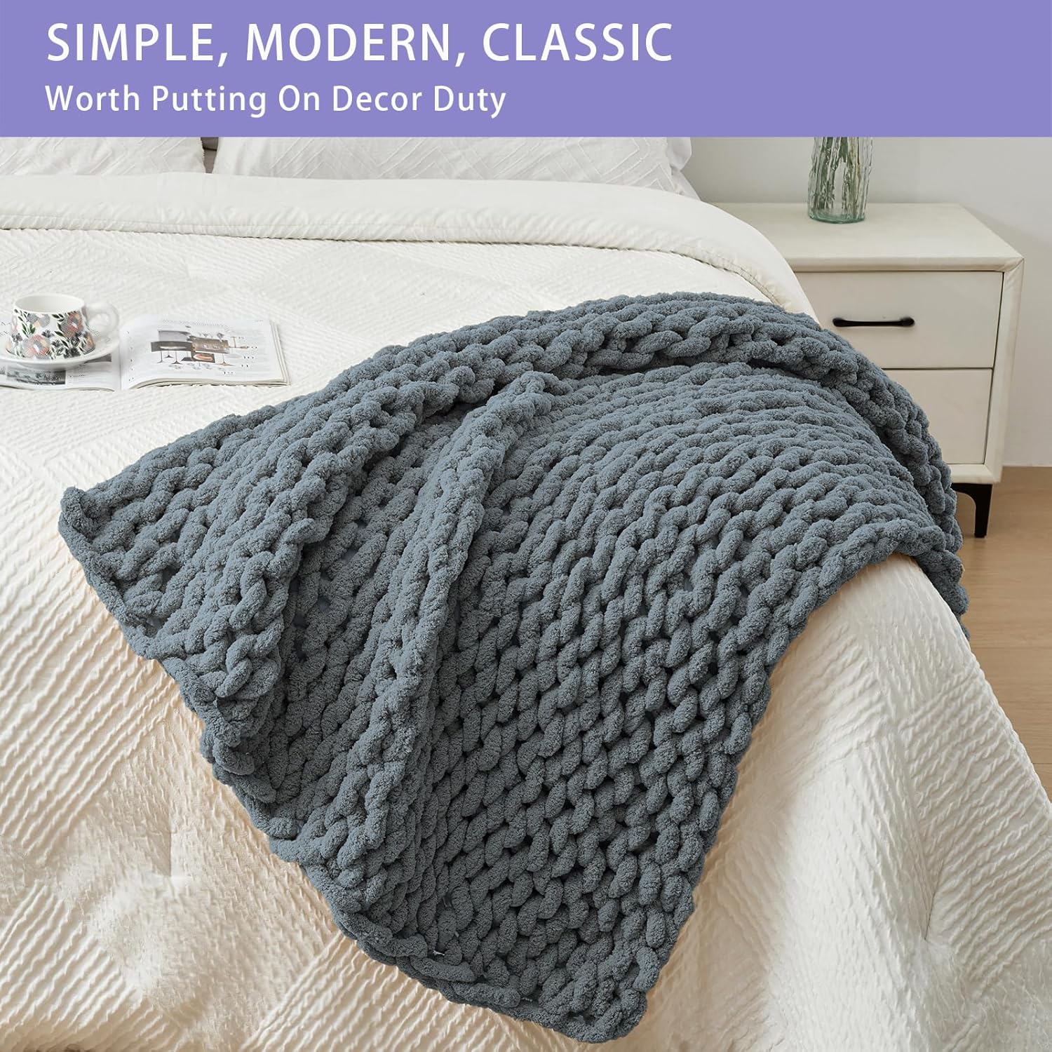 - No Shedding, No Stiffness, No Prickly: Our soft thick blankets and throws are knitted with premium chenille yarn to prevent shedding and stiffness, on chilly days, wrap you and your loved ones in the chunky blanket and enjoy this cuddly throw together