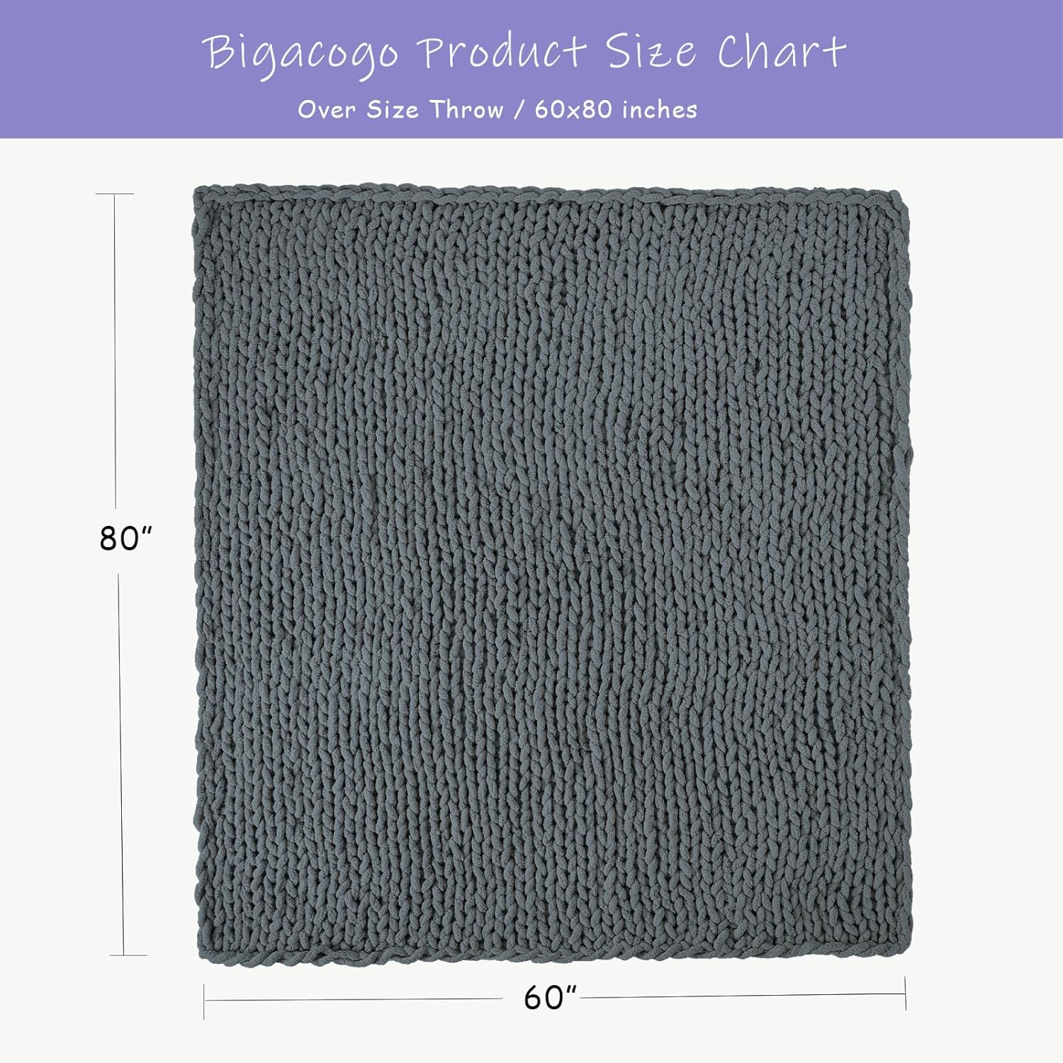Bigacogo Chunky Knit Throw Blanket for Couch, 60x80 inches, 100% Hand Knitted with Thick Jumbo Chenille Yarn, Cozy Soft Large Rope Knot Cable Crochet Blankets for Sofa Bed Living Room, Iron Gray