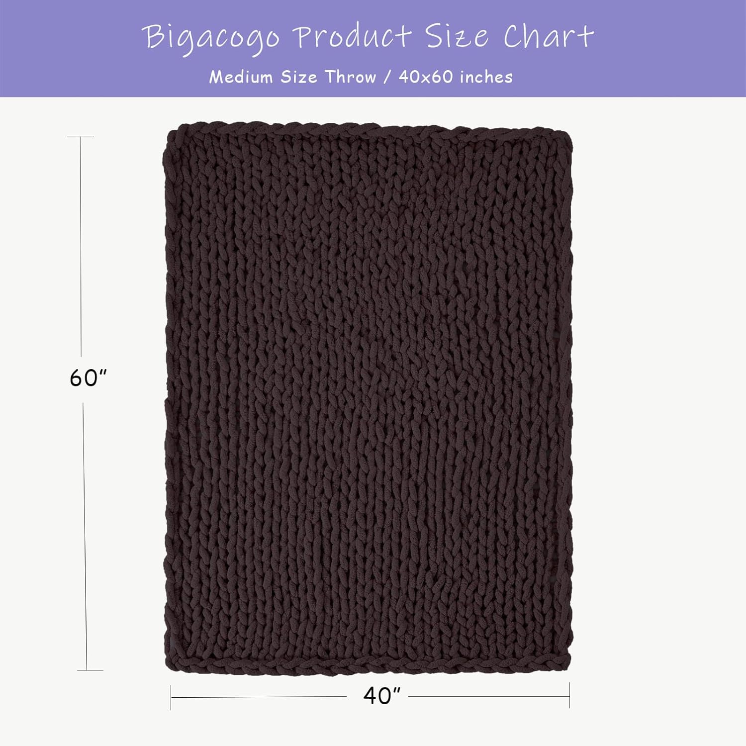 Bigacogo Chunky Knit Throw Blanket for Couch, 40x60 inches, 100% Hand Knitted with Thick Jumbo Chenille Yarn, Cozy Soft Large Rope Knot Cable Crochet Blankets for Sofa Bed Living Room, Chocolate