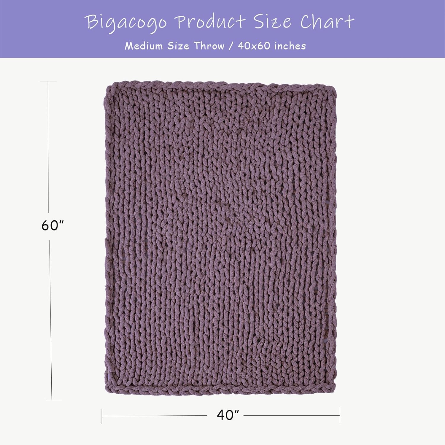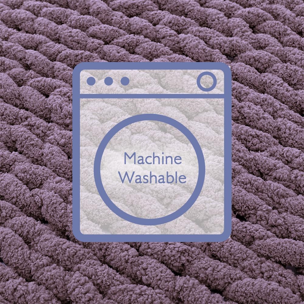 Bigacogo Chunky Knit Throw Blanket for Couch, 40x60 inches, 100% Hand Knitted with Thick Jumbo Chenille Yarn, Cozy Soft Large Rope Knot Cable Crochet Blankets for Sofa Bed Living Room, Winter Grape