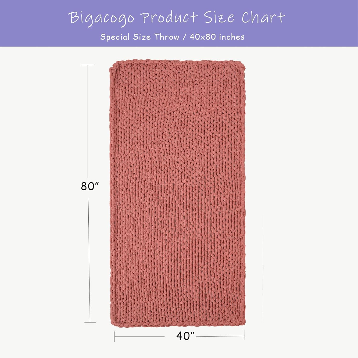 Bigacogo Chunky Knit Throw Blanket for Couch, 40x80 inches, 100% Hand Knitted with Thick Jumbo Chenille Yarn, Cozy Soft Large Rope Knot Cable Crochet Blankets for Sofa Bed Living Room, Antique Red
