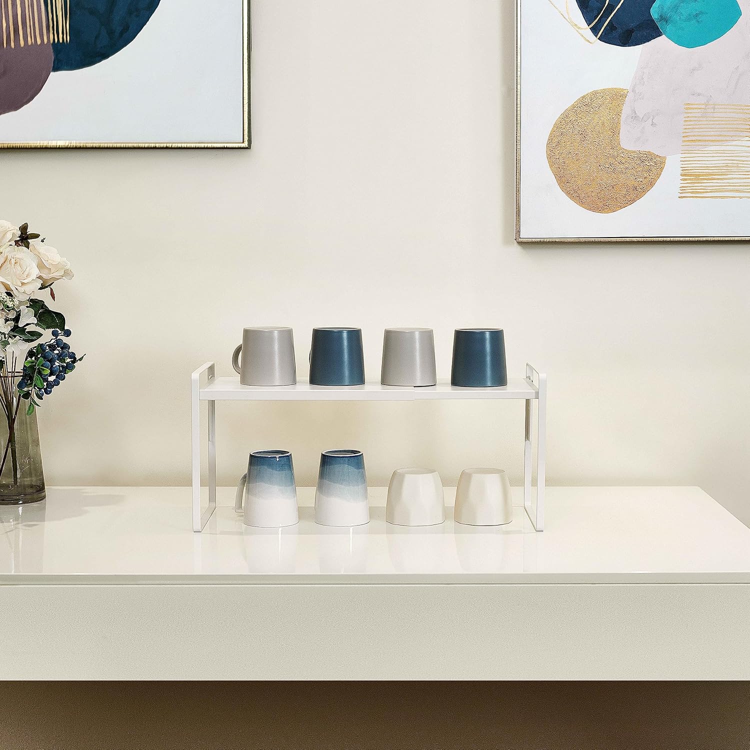 Nxconsu Cabinet Shelf Expandable Height Adjustable Shelf Organizer Riser for Kitchen Cabinet Pantry Cupboard Under Sink Countertop Organization Storage Space Saver Stackable Heavy Duty Metal White XXL