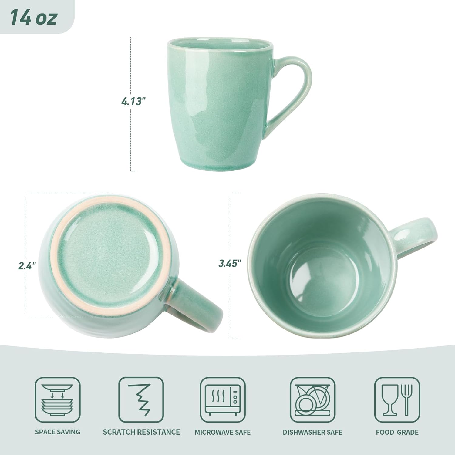 - Material Stoneware : Capacity 14 ounces