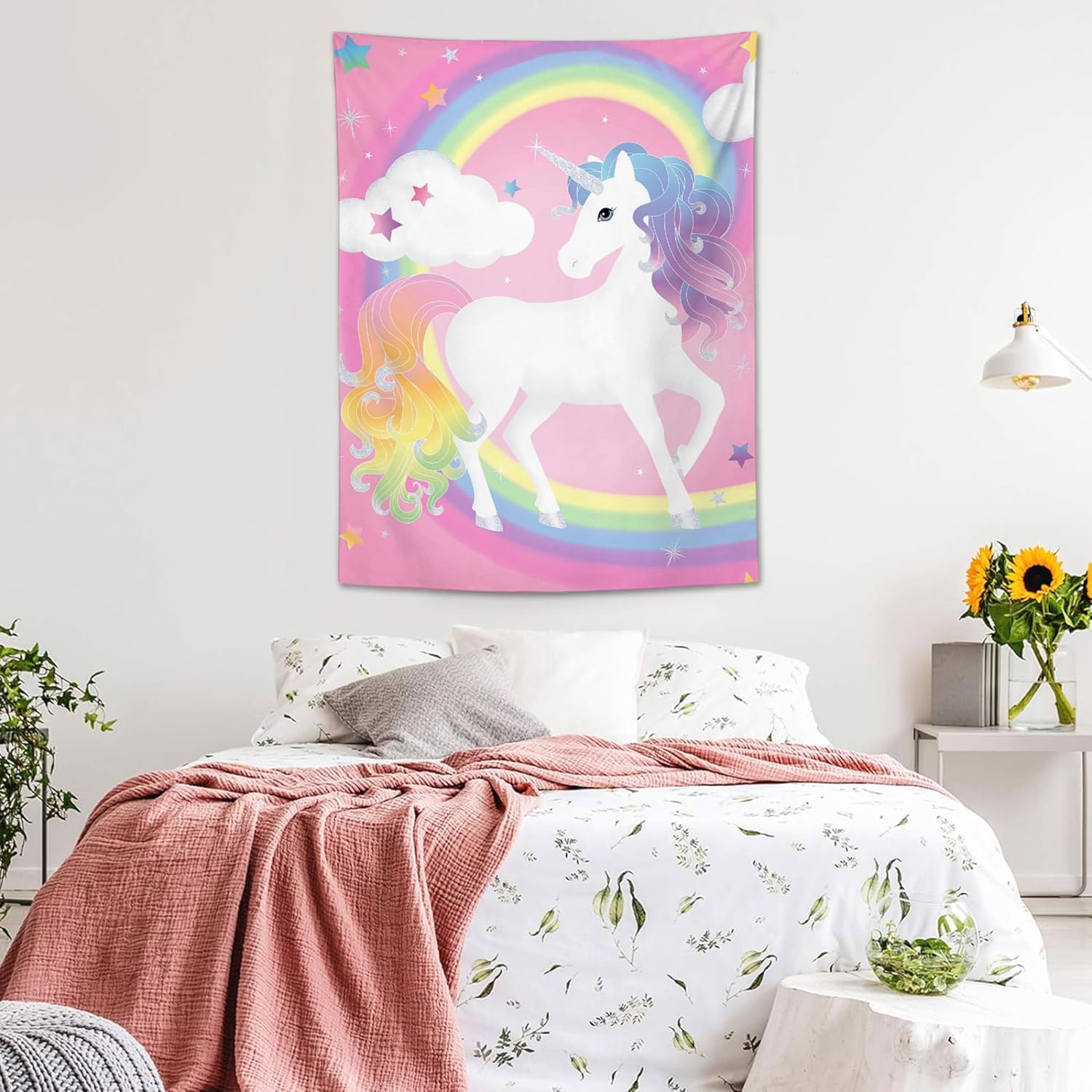 yowecso Unicorn Tapestry Rainbow Wall Hanging for Bedroom, Pink Unicorn Tapestries Aesthetic Wall Decor for Home, Dorm, Living Room - 60"x90"