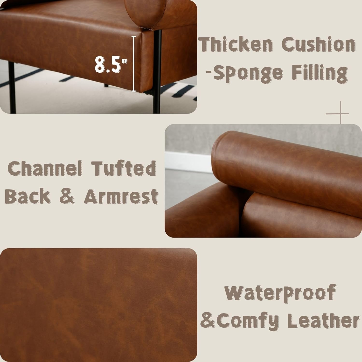 Modern Accent Chair, Single Sofa Accent Chair for Living Room, Upholstered Leather Mid-Century Modern Armchair, Oversized Reading Chair with Channel Tufted for Bedroom, Office, Brown