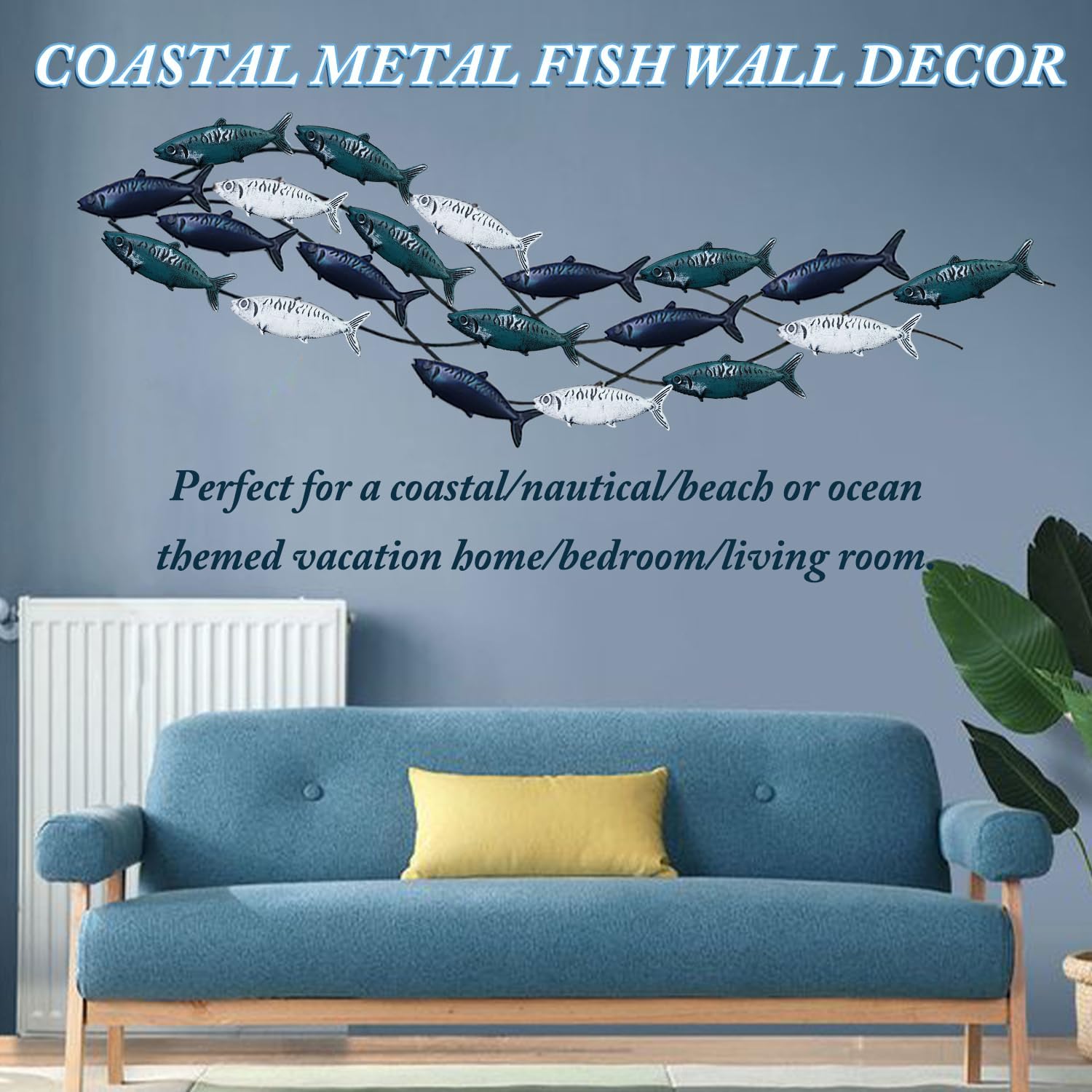 - Nautical Wall Decor : this coastal nautical decor for wall features the shape of fish, vivid and funny, moving upwards as the school of fish moves. 3D metal fish wall art is perfect for any room with coastal, nautical, beach, or boat décor. School of fish modern metal wall art will make a statement on your wall.