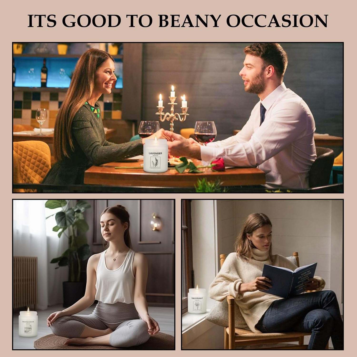 - Natural Soy Wax : Aromatherapy candle sets Made from premium soy wax and 8% premium oils without bad ingredients. oils with wicks made from lead-free cotton to provide a cleaner, longer burn. Light it up to give you relaxation and stress relief.