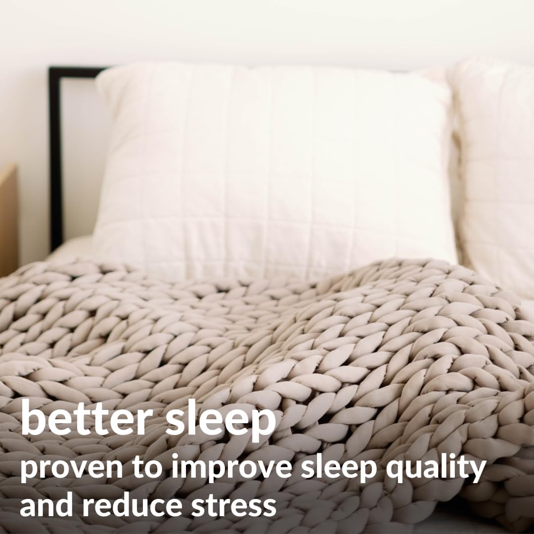 - SLEEP COOL AND COMFY: Bid farewell to restless nights caused by overheating. Thanks to our open weave design, our knitted weighted blanket offers a breezy comfort, proving perfect for warm sleepers or humid conditions. Relish the luxury of year-round coolness, whether it's summer or winter.
