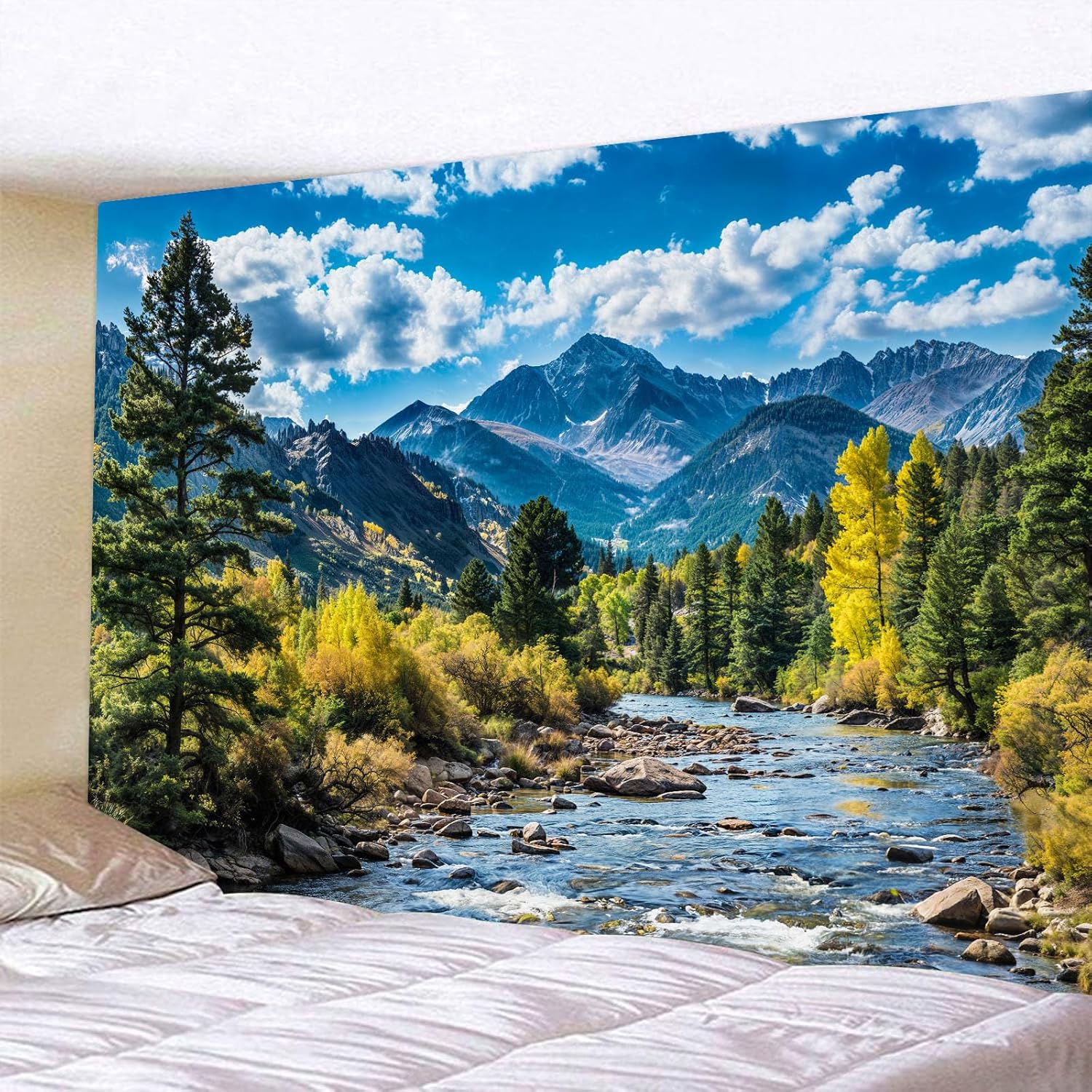 - ⛰️【Easy to Clean and Maintain】: This mountain tapestry is machine washable, making it easy to care for. Simply wash on a gentle cycle with cold water, and tumble dry on low or hang to dry. The colors remain vibrant and fresh after many washes. And please do not use bleach.