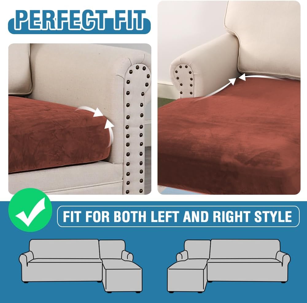 H.VERSAILTEX Velvet Stretch Sectional Couch Covers 4 Pieces Sofa Seat Cushion Covers L Shape Separate Cushion Couch Cover for Both Left/Right Sectional Couch (Large Sofa 3 Seater + 1 Chaise, Rust)