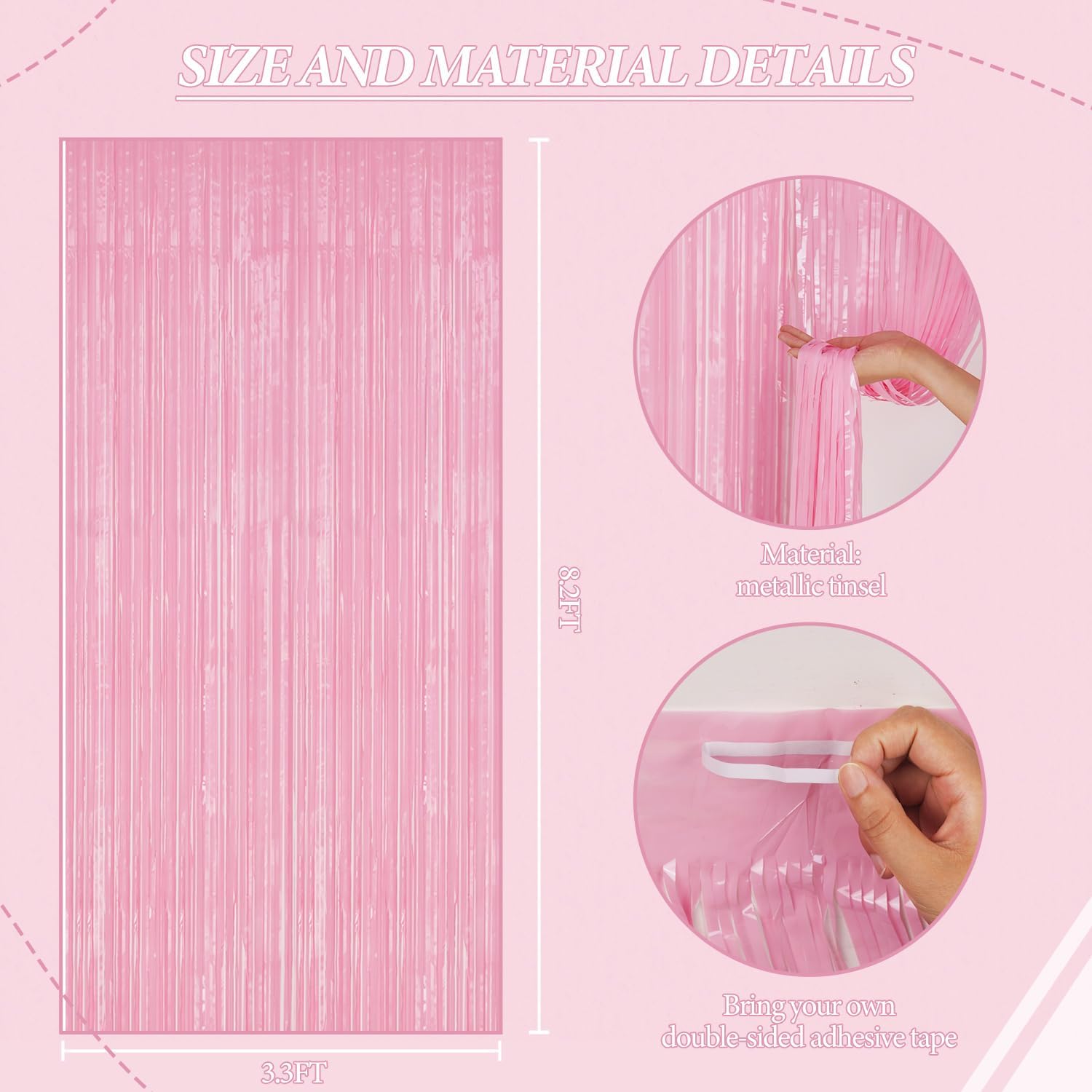 3 Pack Foil Fringe Backdrop - PastelPink Shiny Tinsel Curtains for Party Decoration/Photo Booth Props - 3.3x8.2 FT Metallic Foil Backdrop for Birthday, Wedding, Graduation, Christmas.