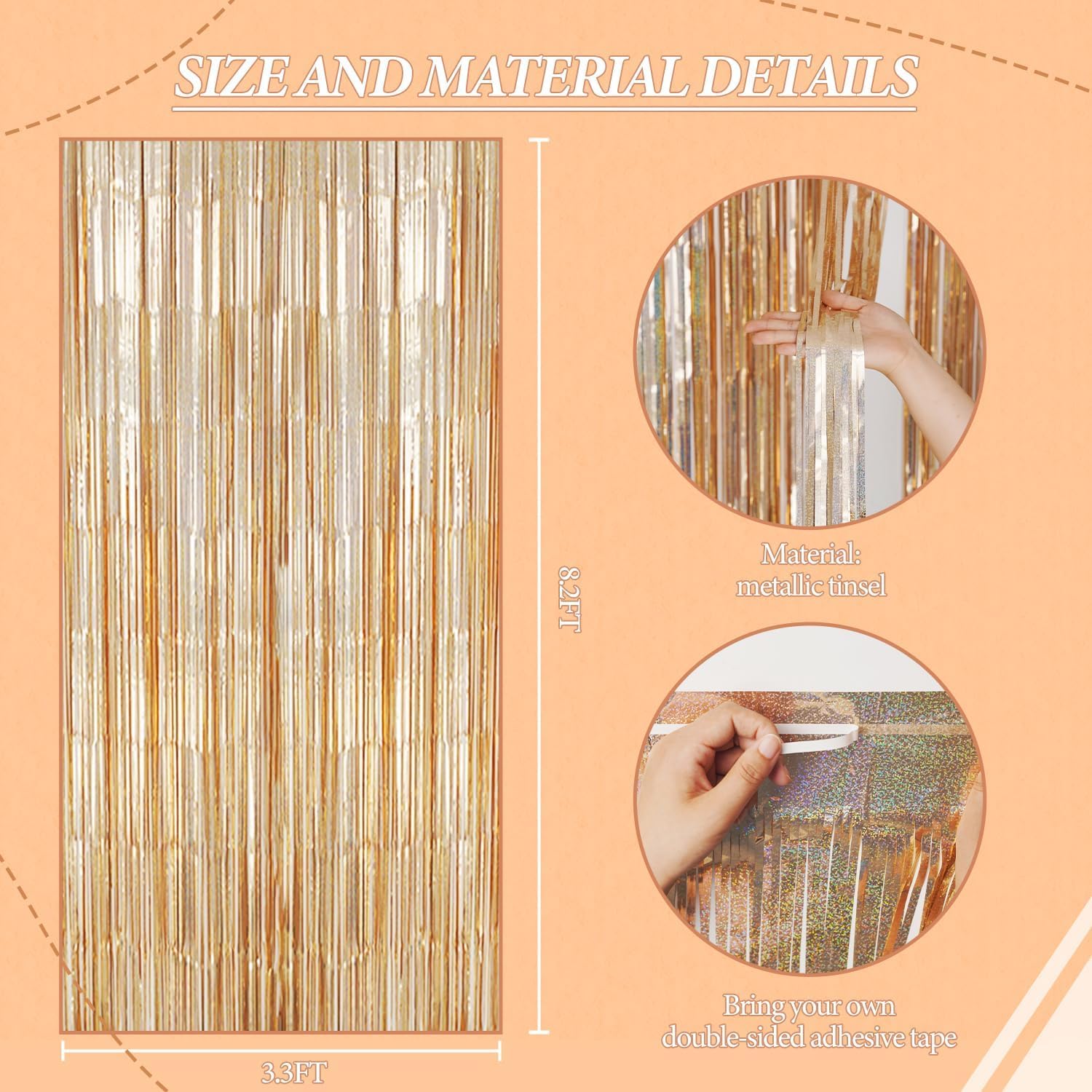 - 【3 Sets of Foil Fringe Curtains】Each package includes 3 sets of 3.3x8.2 ft foil fringe curtains, providing enough length to decorate your party with ease. Perfect for creating a stunning backdrop for any occasion.