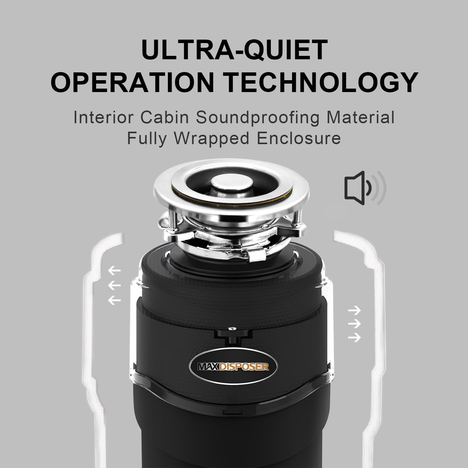 - Ultra-Quiet Operation: Features aviation-grade sound insulation and fully enclosed system for whisper-quiet operation - significantly quieter than standard disposals.