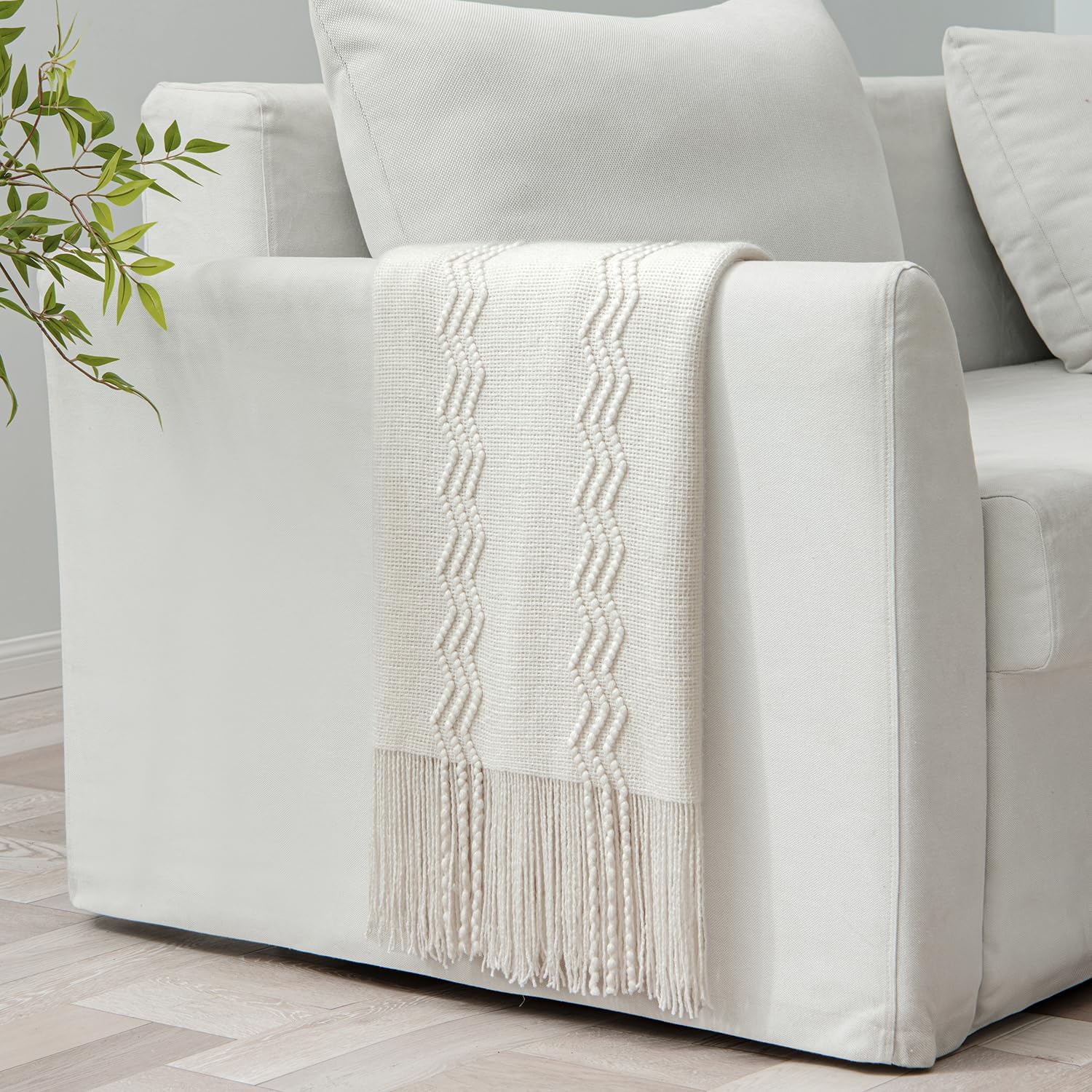 - MIULEE THROW BLANKET: 50"x60" off white blanket is made of cozy weave fabric which has good comfort and breathability with cute tassels.