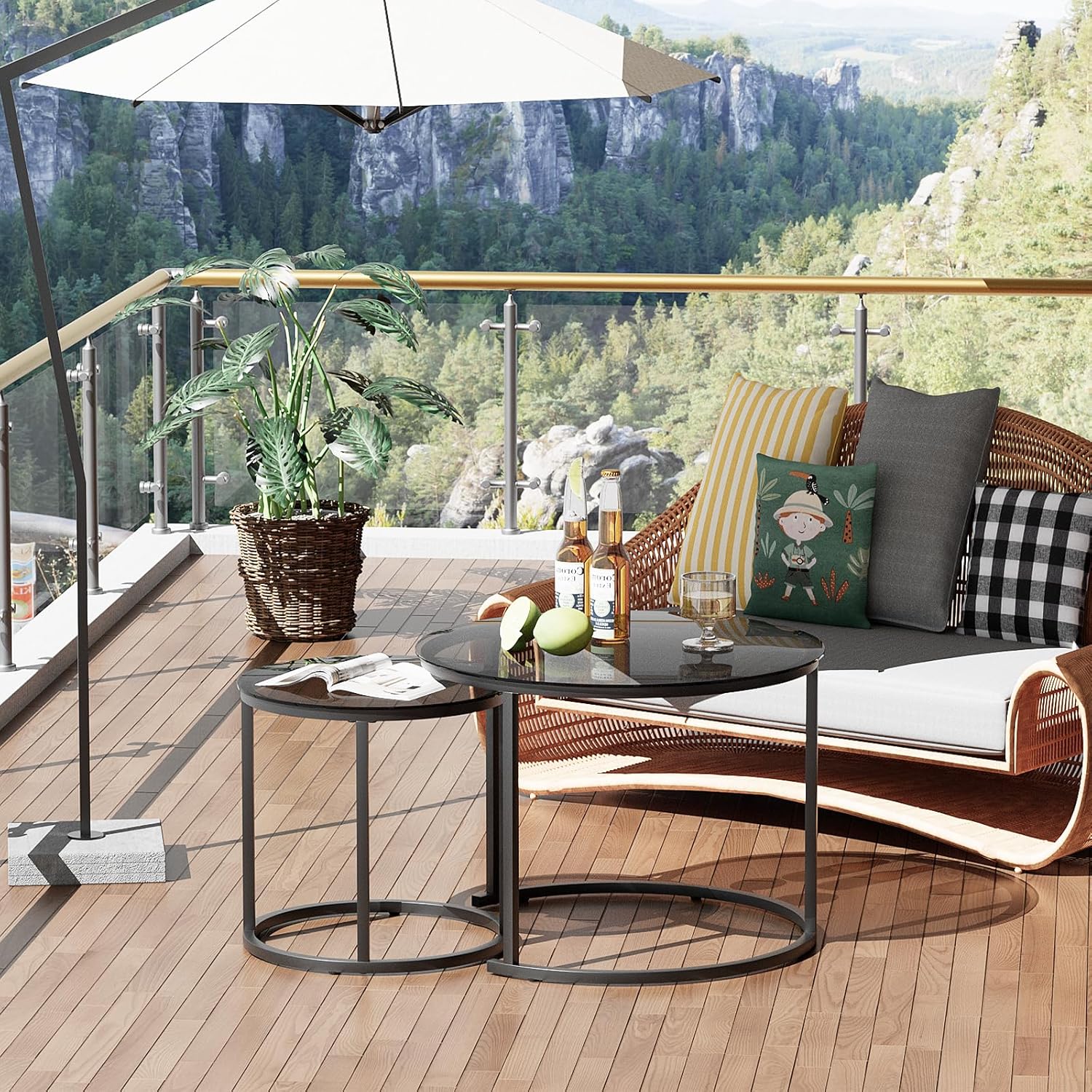 - ✔COMBIME AS YOU LIKE: Nesting coffee tables include a large table (Φ 23.6 × 17.7 inch) and a small table (Φ 15.7 × 15.7 inch). A small table can be placed under the bigger one. You can combine them as you like