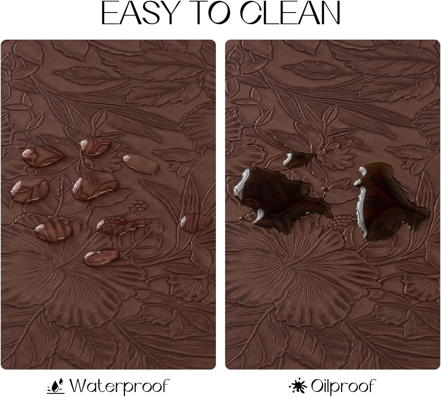 Romanstile Vinyl Placemats Set of 8-12 X 18 Inch - Heat Resistant Non-Slip Embossed Floral Place Mats 100% Waterproof Oilproof Wipeable Faux Leather Table Mats for Kitchen/Dining/Party, Brown