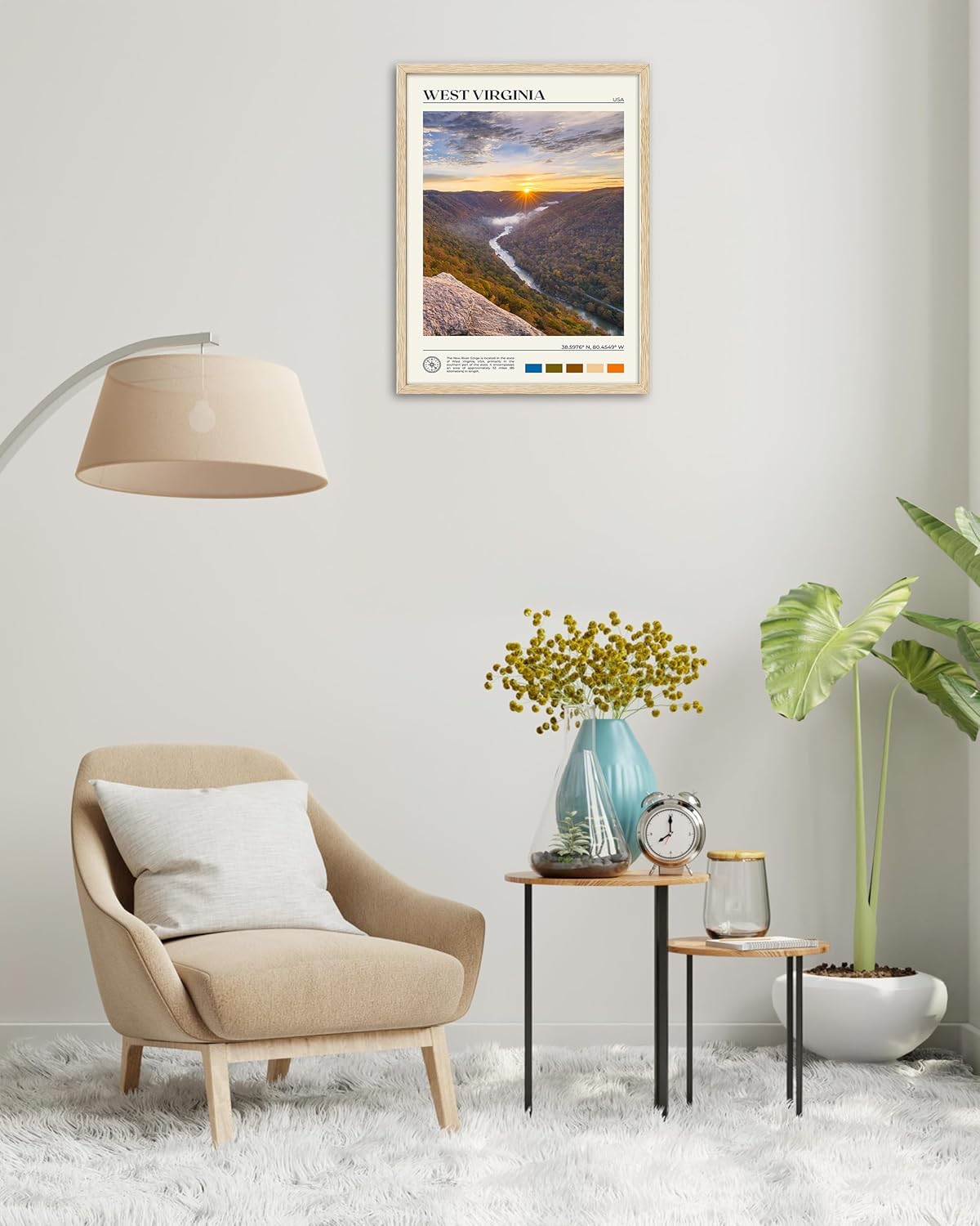 HesenDot Natural OAK Wood Framed West Virginia Wall Art,12x16in New River Gorge Quality Canvas Wall Print,Classic Urban Landmark Wall Decor for Living Room,Bedroom,Office Gallery Gifts Set of 1