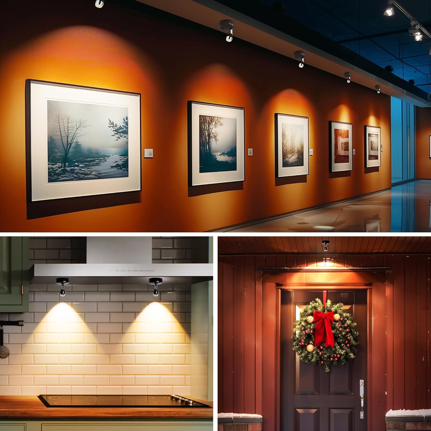 - Button & Remote Control: This magnetic indoor spotlight offers dual control options – effortlessly switch between button and remote control. The included remote streamlines the process, allowing you to manage ON/OFF, 3 color temperature settings, brightness adjustments, and timing.