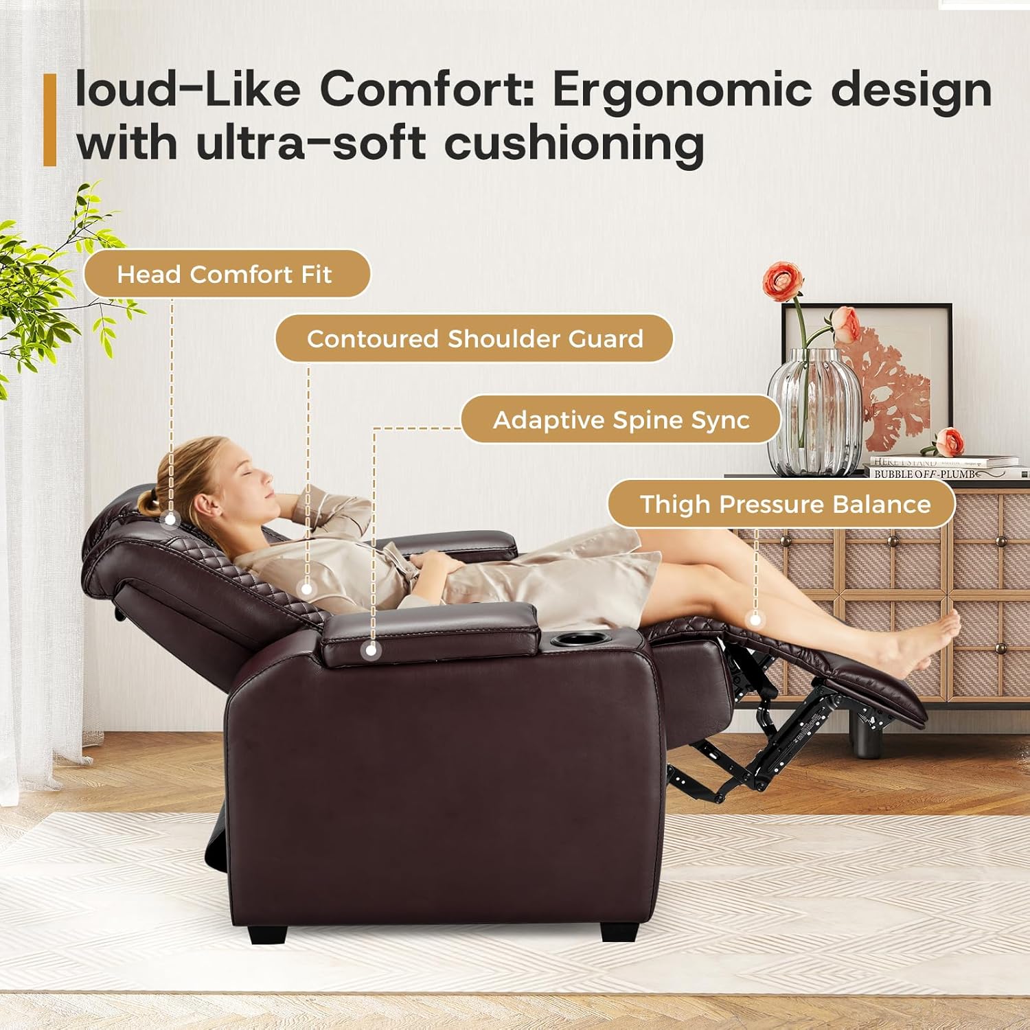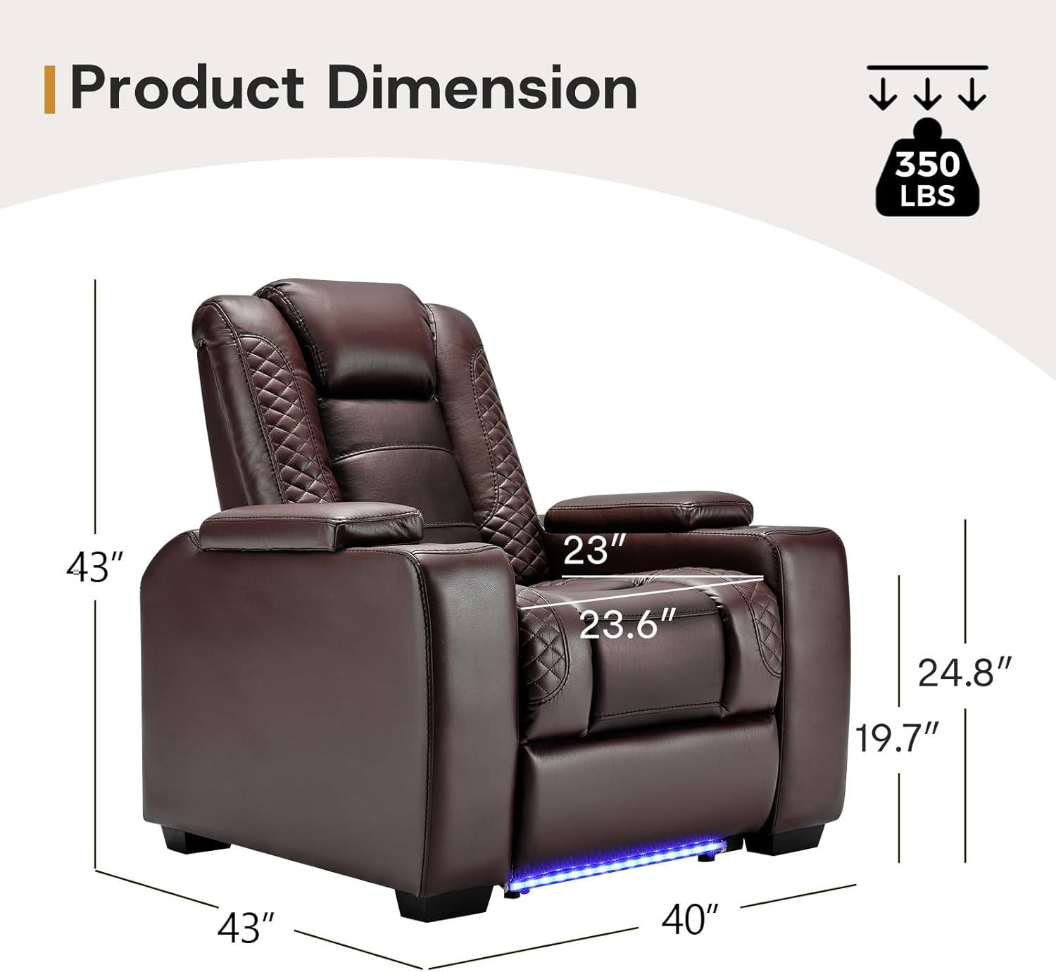 ANJ Power Home Theater Seating, PU Leather Electric Recliner Chair with Powered Headrest, Dual Motors Movie Reclining Chairs with LED Lights,USB Port, Cup Holders, Hidden Arm Storage (Brown)