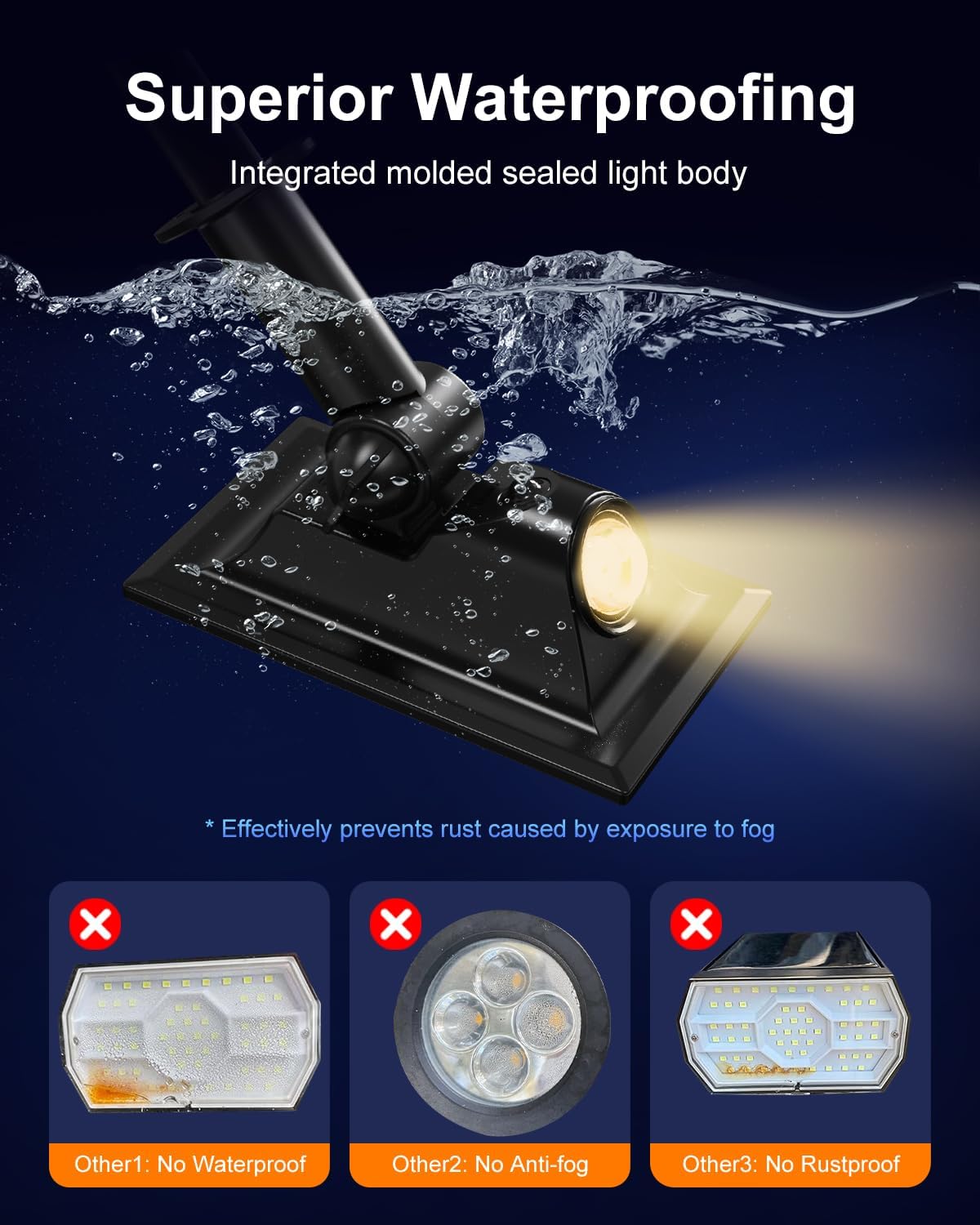 - Enhance Outdoor Space Accent Lighting: Our solar landscape spotlights are ideal for enhancing safety and ambiance in yards, gardens, porches, walkways, and driveways. Solar powered spotlight provide accent lighting for features like trees, plants, fountains, pools, mailboxes, house numbers, flags, rooftop decorations, and walls, making them visually striking at night. The outside spotlights are also perfect for accentuating holiday decorations during Halloween, Christmas, and other festive occasions, creating a captivating atmosphere.