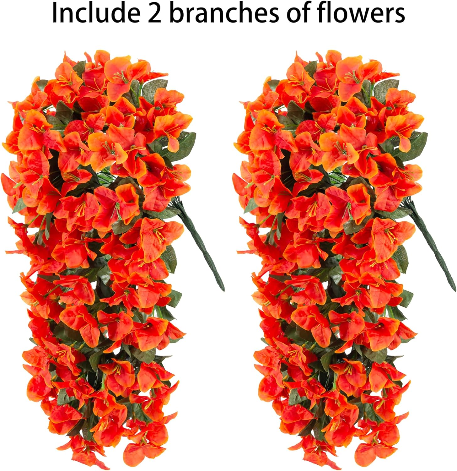 Artificial Bougainvillea Faux Flowers Plants for Outdoors Outside Fall Autumn Decor, 2 PCS Silk Trailing Vines UV Resistant Realistic Orange Fake Flowers for Planter Front Door Porch Patio Balcony