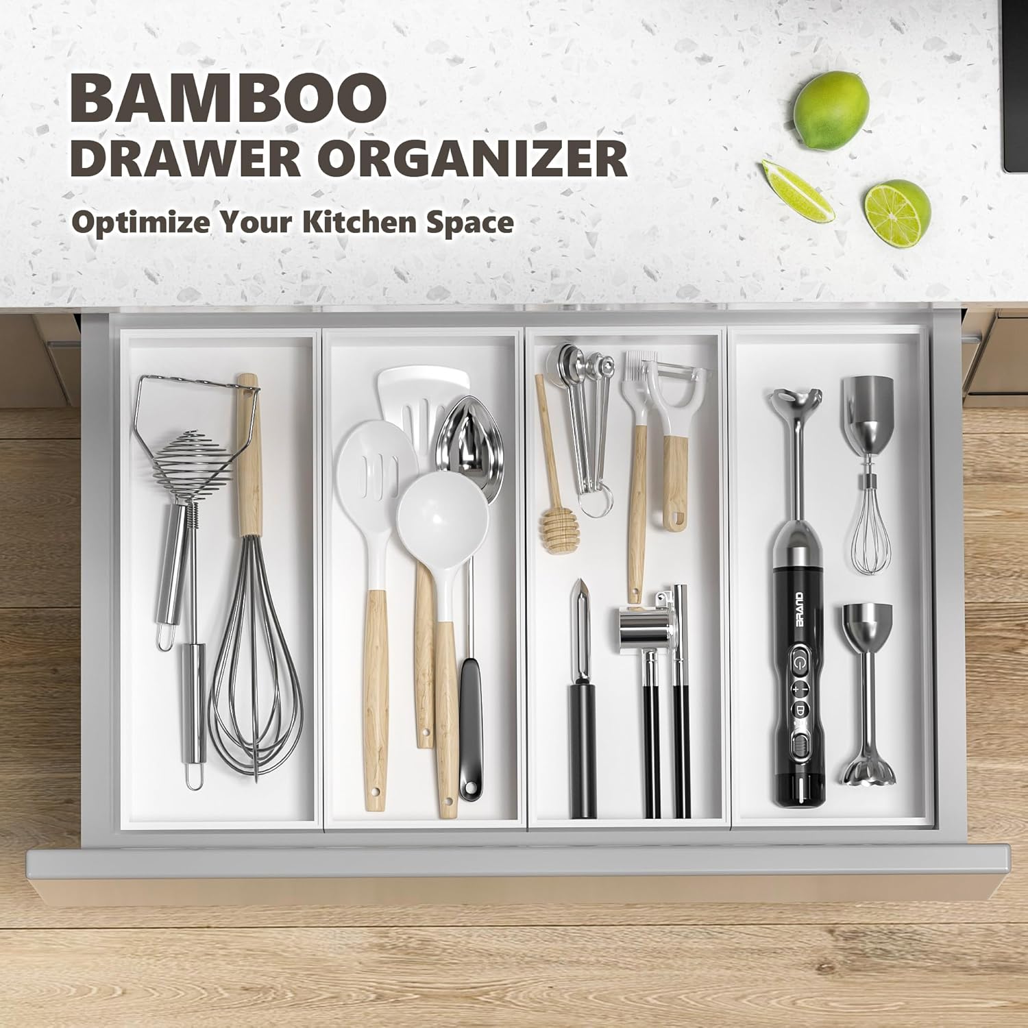- 2 PCS Kitchen Drawer Organizer - Our kitchen drawer organizers for small or large utensils, silverware, cutlery and flatware is an absolute necessity for kitchen. This silverware organizer set offers ample space for storing most cooking utensils in the kitchen, such as spatulas, ladles, tongs, and whisks, also an great idea for organizing cutlery like spoon
