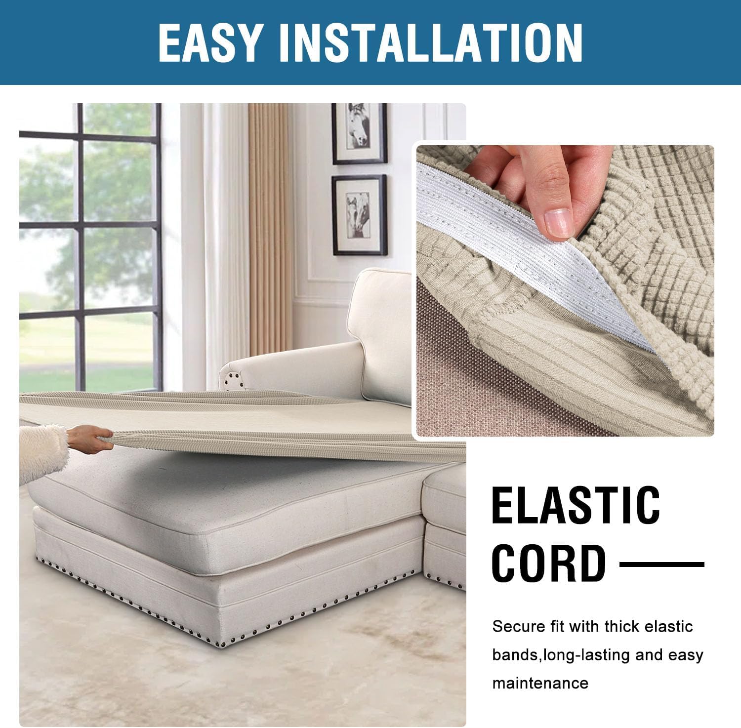 - GREAT FIT: Set of 1. This innovated cushion slipcover is crafted from durable and soft high stretch knitted jacquard fabric. Large Size Chaise Lounge Cover for Both Left/Right L Shaped Couch(fits up to 38-45 inch width, 64-72 inch depth, 3-8 inch thickness). Feature one-size-fits-most, kindly measure before ordering