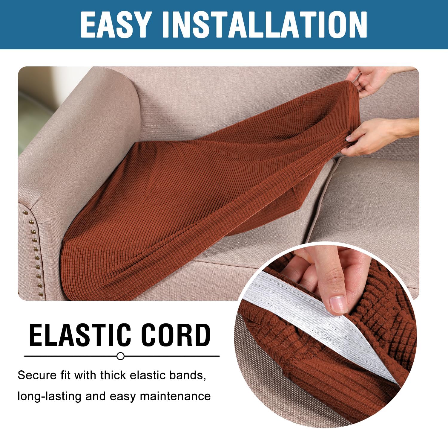 H.VERSAILTEX Super Stretch Individual Seat Cushion Covers Sofa Covers Couch Cushion Covers Slipcover Sets Thick Jacquard Textured Twill Fabric (2 Piece Medium Sofa Cushion Covers, Rust)