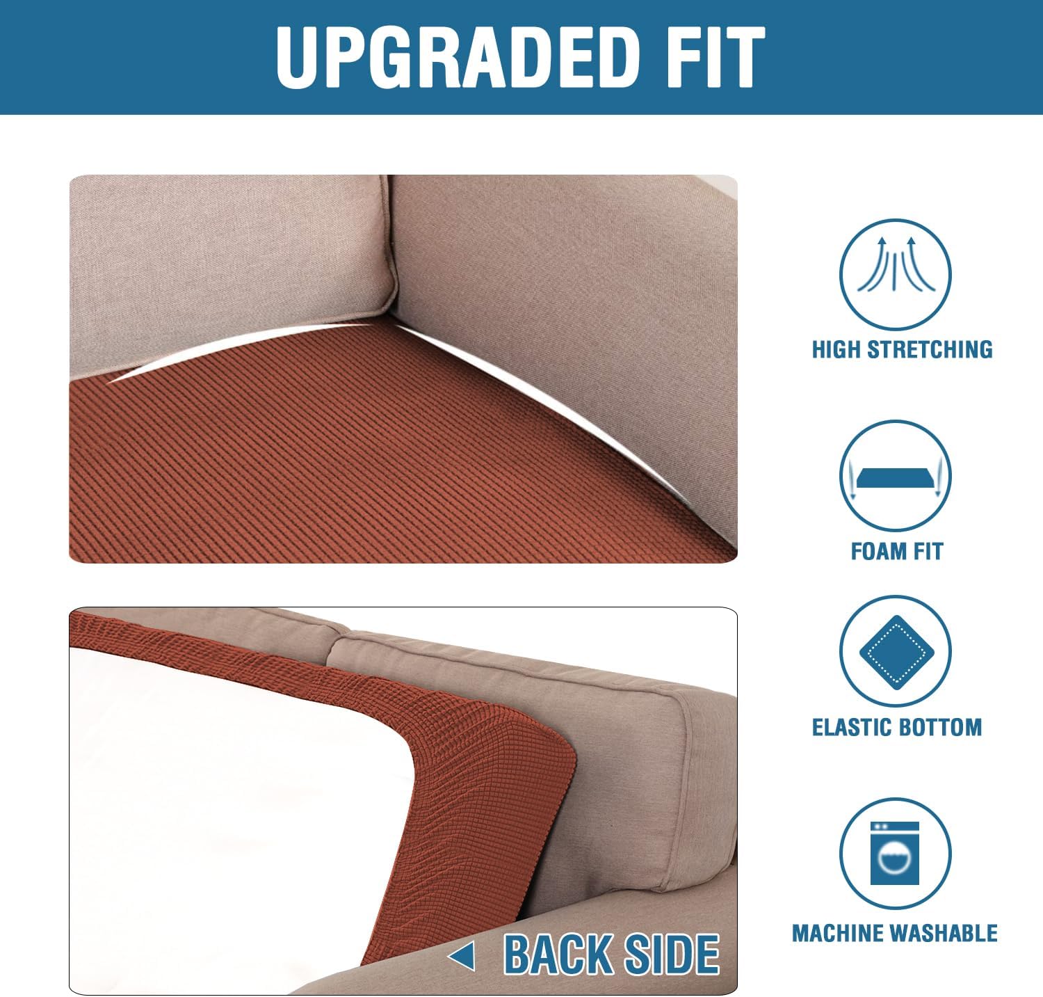 H.VERSAILTEX Super Stretch Individual Seat Cushion Covers Sofa Covers Couch Cushion Covers Slipcover Sets Thick Jacquard Textured Twill Fabric (1 Piece Chair Cushion Cover, Rust)