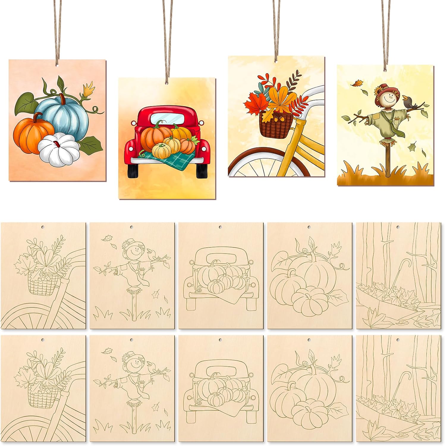 - Large Unique Fall Wooden Crafts To Paint - These unfinished woods come with autumn elements laser carving line drafts, such as pumpkins, fallen leaves, maple leaves, a scarecrow, an autumn truck, and a bicycle. Sufficient quantity, and suitable size for you to use on DIY craft projects, you can also share them with your friends.