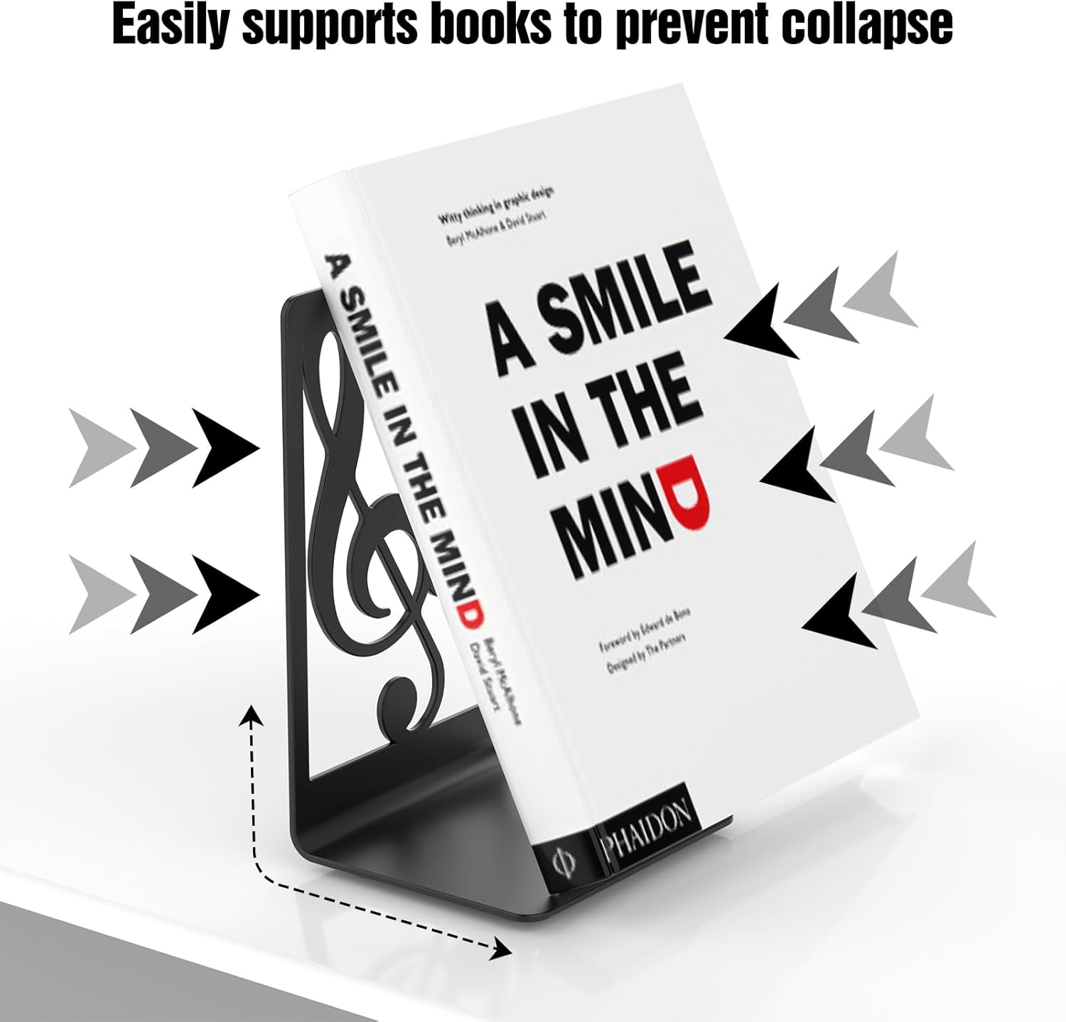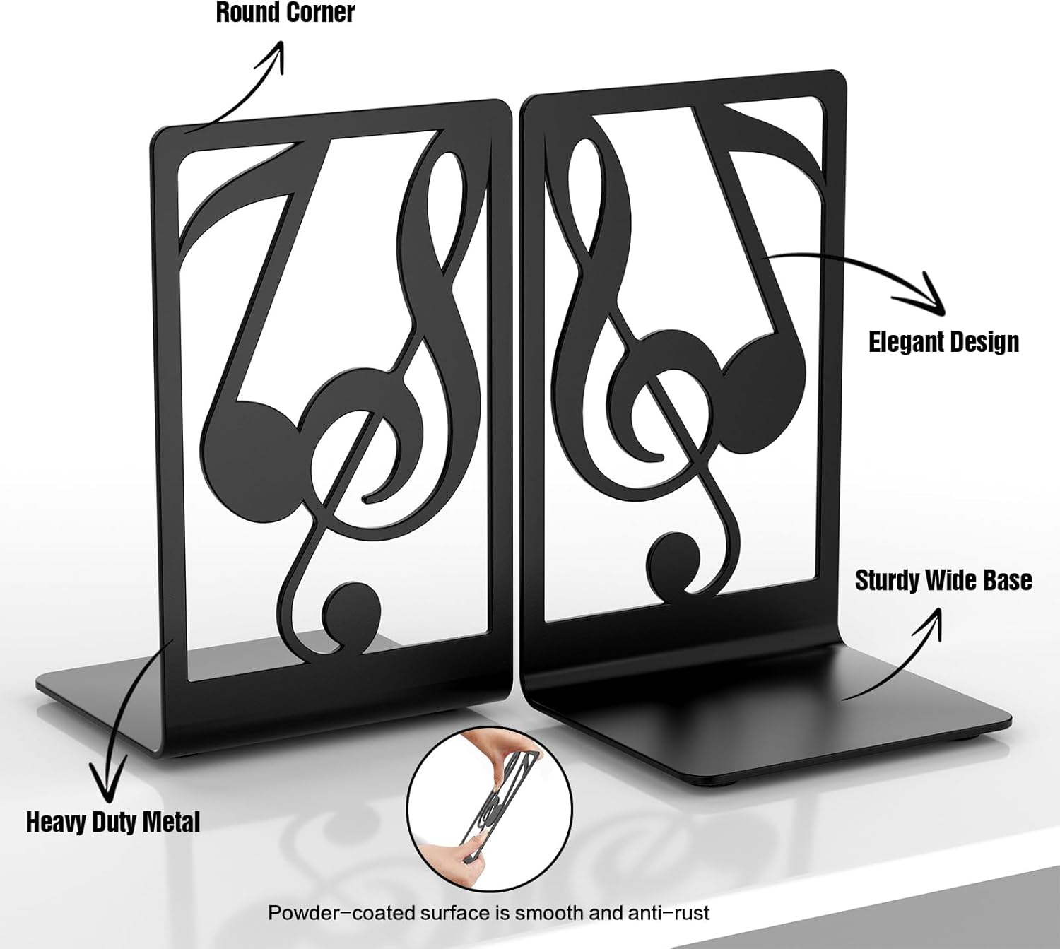 - 【Metal Book Ends】: Crafted from selected heavy-duty steel, our book ends features unique designs of musical notes and flowers, adding an artistic ambiance to your reading space. Not only practical but also aesthetically pleasing.