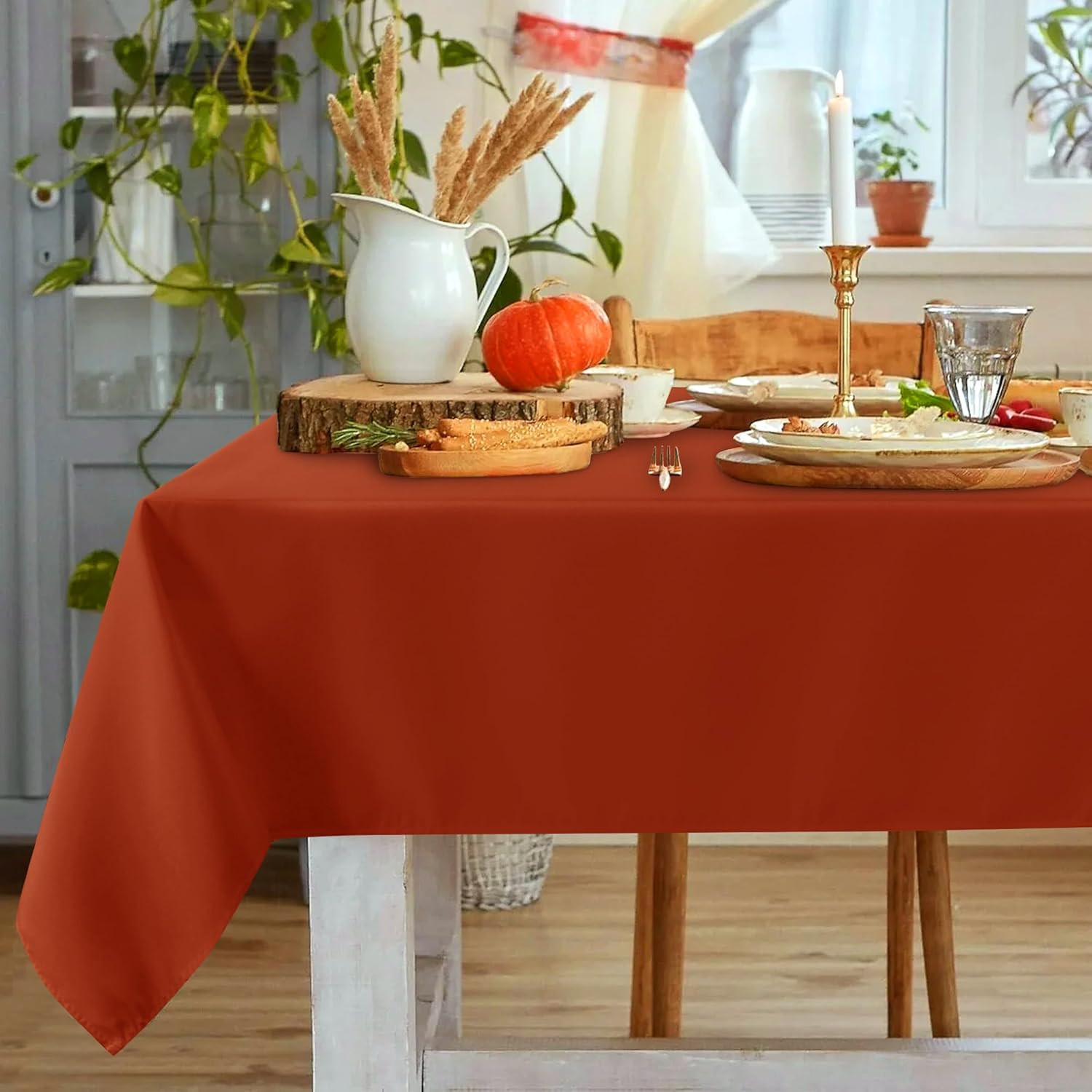 sancua Fall Tablecloth for 6 Foot Tables, 60 x 102 Inch Burnt Orange - Stain and Wrinkle Resistant Rectangle Table Cloth, Fabric Thanksgiving Table Cover for Dining Buffet Parties, Rust Pumpkin Orange