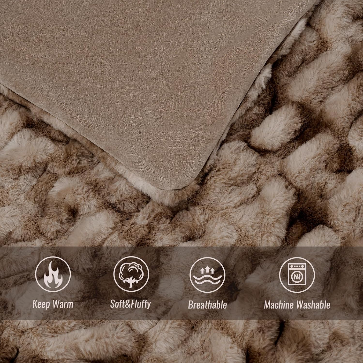 - Luxurious Cozy Wrinkled Faux Rabbit Fur Blanket: Wrap yourself in ultimate comfort with our fluffy blanket. Made from a luxurious blend of faux fur and minky, this 650GSM blanket features a crystal velvet lining for a double-sided experience. Enjoy the supreme coziness of rabbit fur without compromising on animal life. Perfect for adding a touch of luxury to your home.