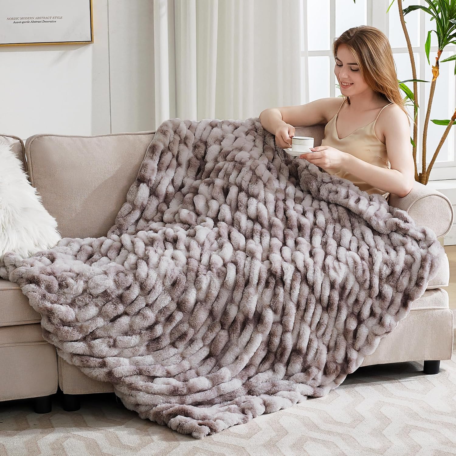 Ultra Soft Luxury Faux Fur Twin Blanket for Counch,Fuzzy Fluffy Plush Warm Cozy Elegant Wrinkled Blanket for Sofa Bedroom Living Room,(60"x80",Tie-dye Taupe)