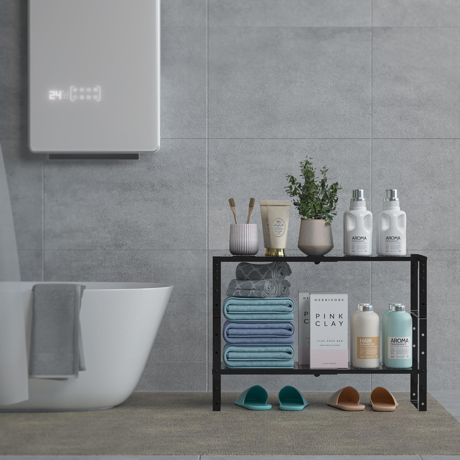 Expandable,Adjustable & Stackable Spice Rack, Cabinet Kitchen Countertop Shelf Organizer,Metal Pantry Storage Shelves - Space-Saving Storage Solution(2Packs/Black/Medium)