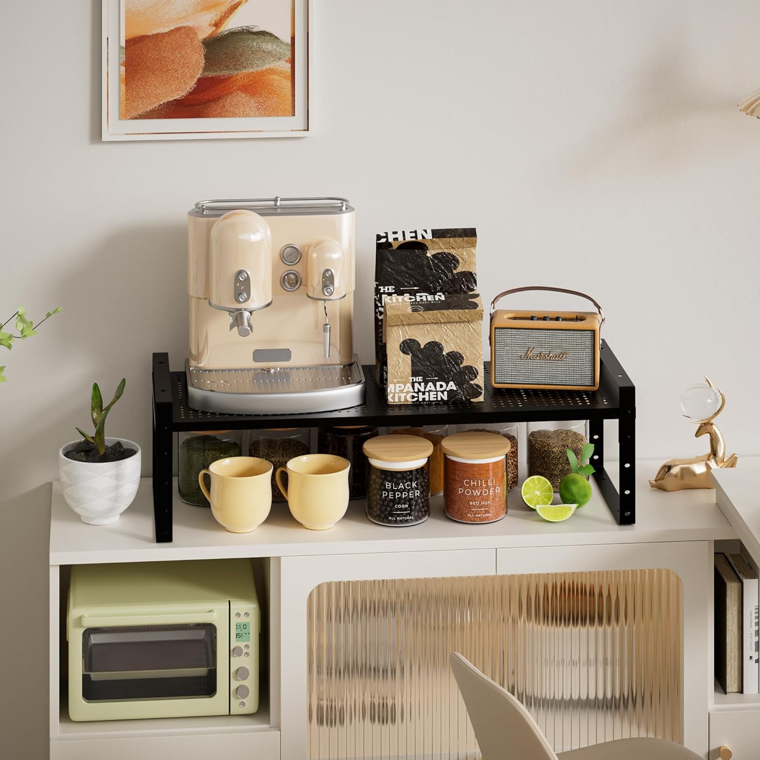 - ⭐【Beautiful and practical】This kitchen shelf not only has strong practicality, but also beautiful design, can be integrated into a variety of kitchen styles. Its existence can not only improve the storage capacity of the kitchen, but also add a beautiful landscape to the kitchen.