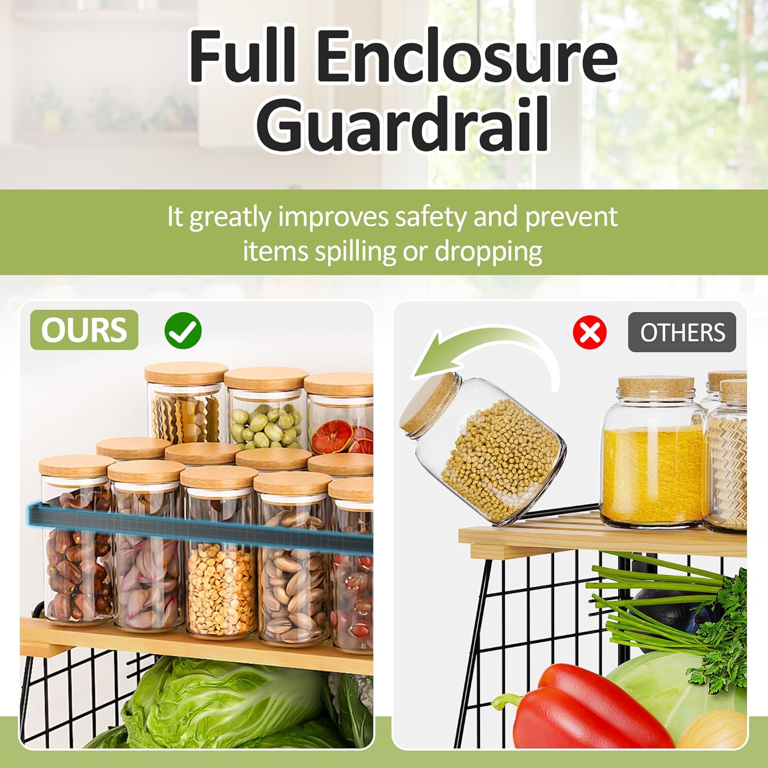 - STURDY, STYLISH & BUILT TO LAST: Made from thick, rust-resistant steel, this magnetic organizer basket features a heavy-duty frame that stays stable and won’t bend, break, even when fully loaded. The ventilated base keeps fruits and veggies fresh, while the wooden lid adds warmth and style. Guardrails and smooth edges ensure safe, spill-free storage.