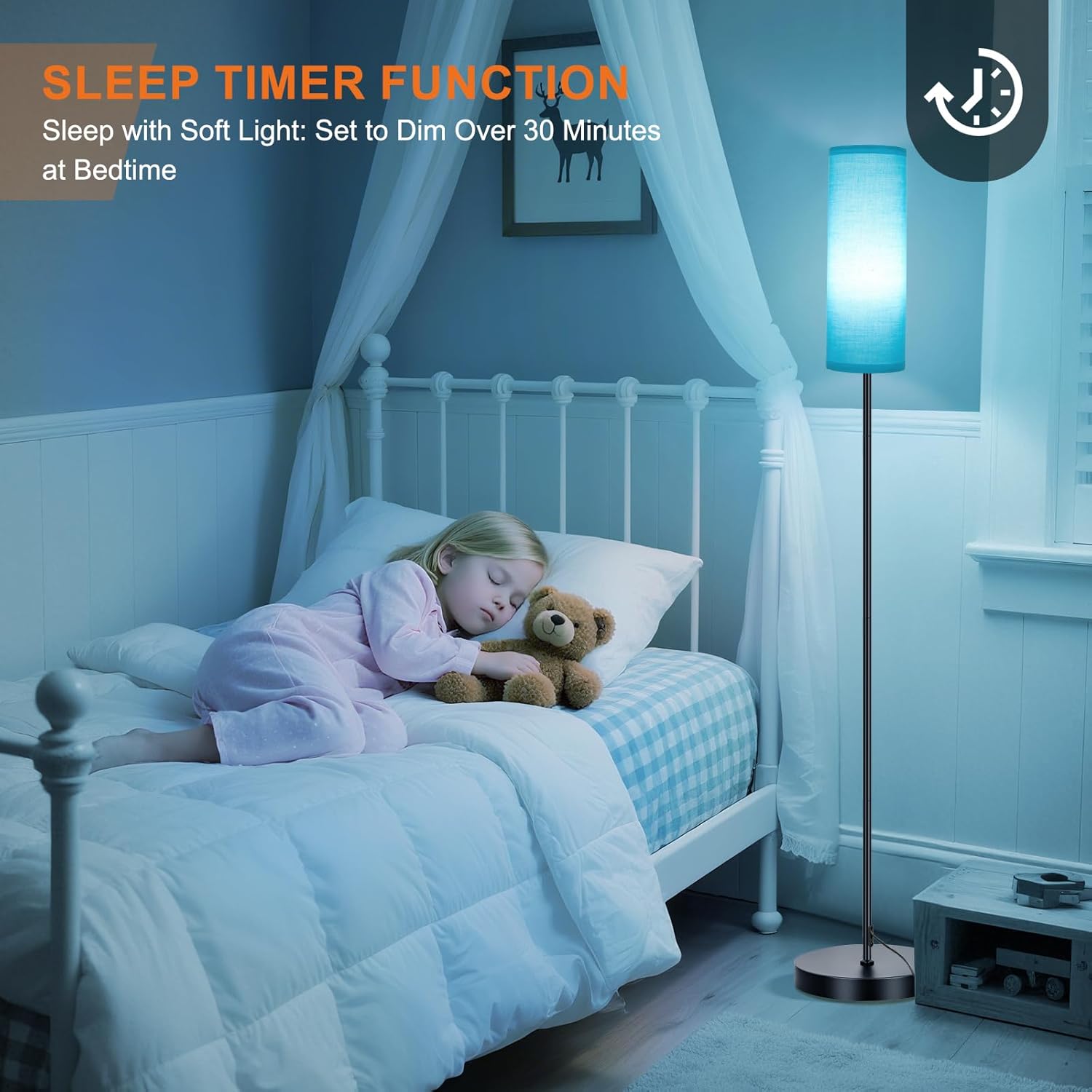 FRIDEKO HOME Floor Lamp for Bedroom, Tall Standing Lamps for Living Room, Modern Corner Floor Lamps for Living Room, 3CCT&Brightness Dimmable, 800 LM, RGB Smart Bulb, Foot Switch, Turquoise Lampshade