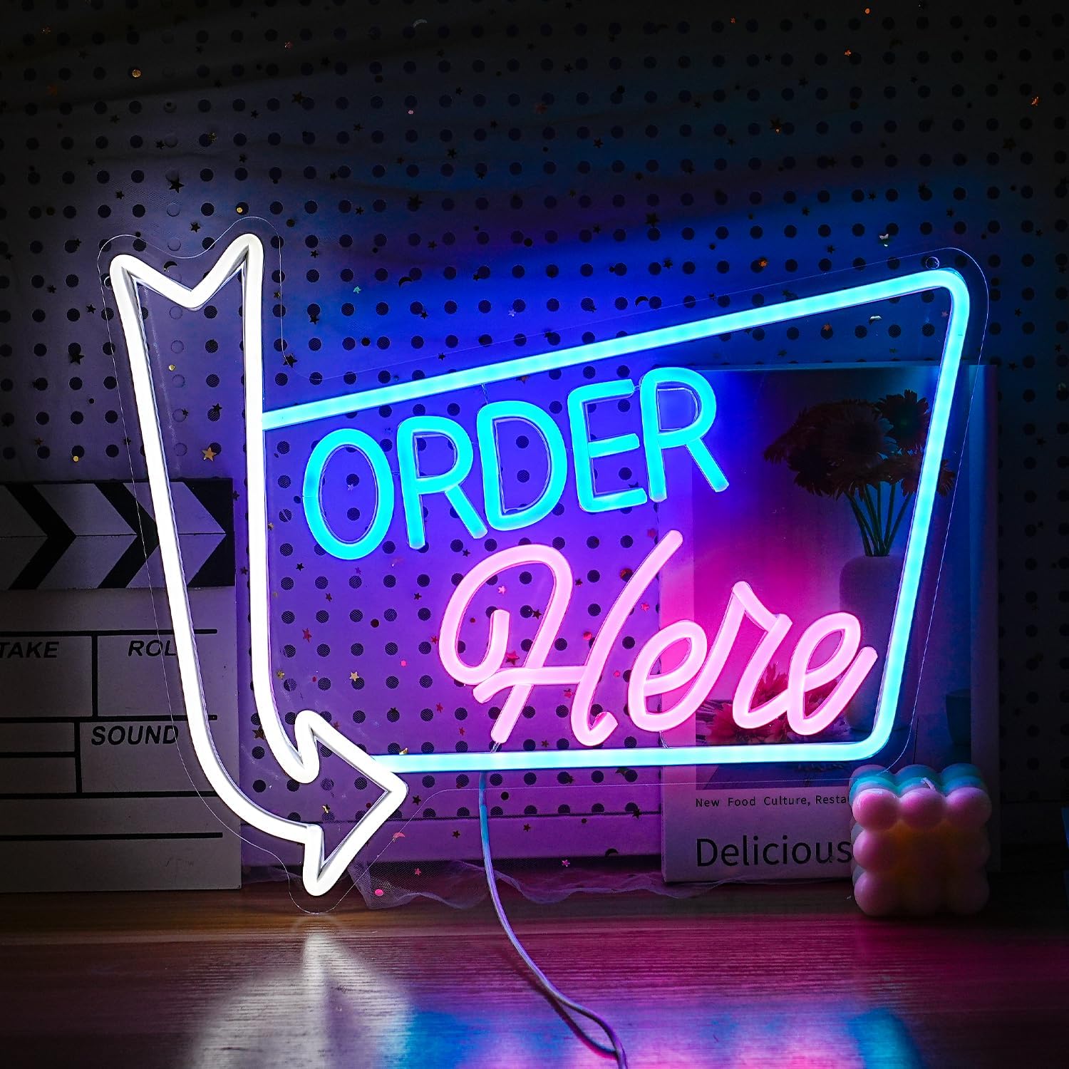 Order Here Neon Sign Led letters Sign Dimmable Order Neon Light for Wall Decor Larger Order Here Light Up Sign for Restaurant Shop Bar Business Neon Decor(16.1 * 12.6 In)