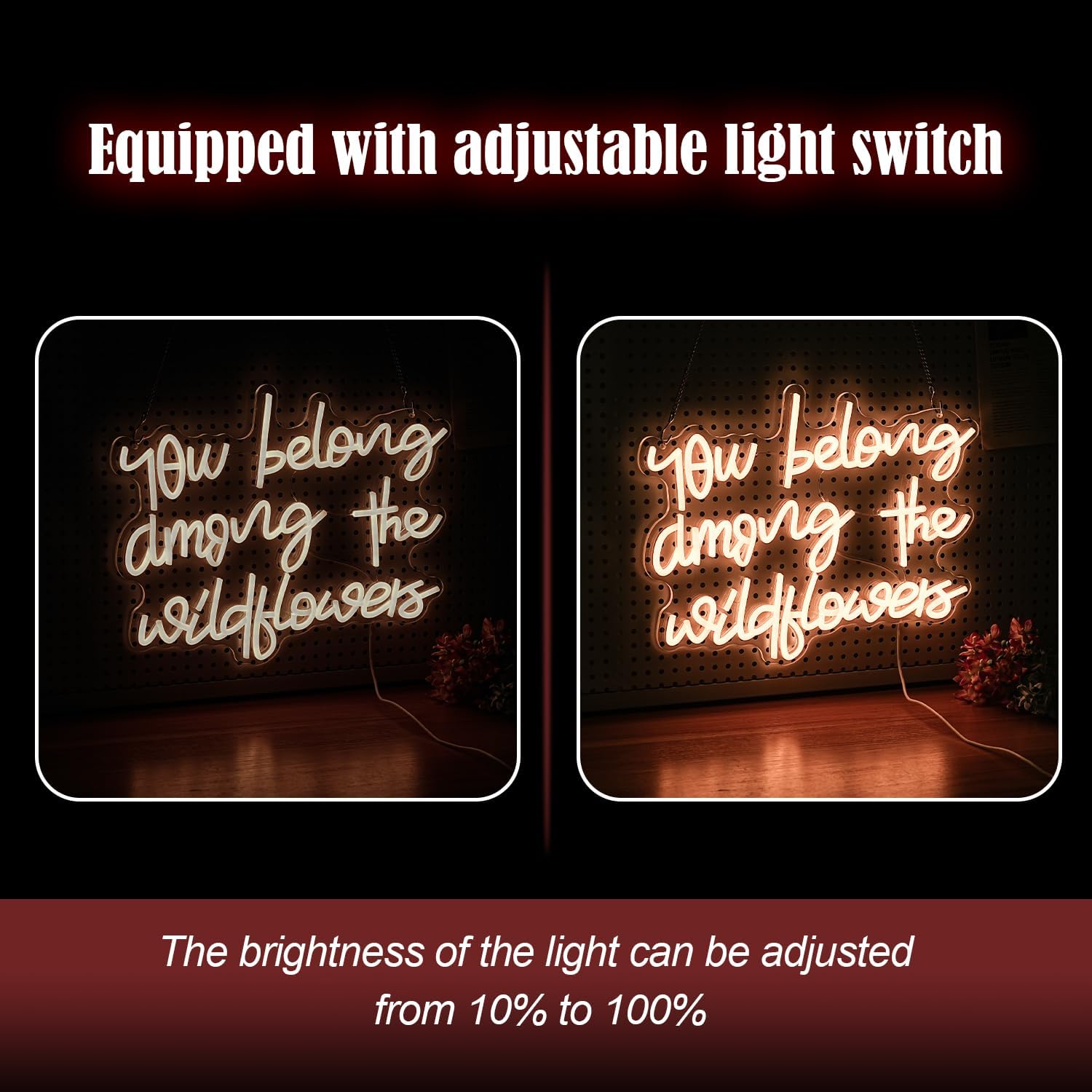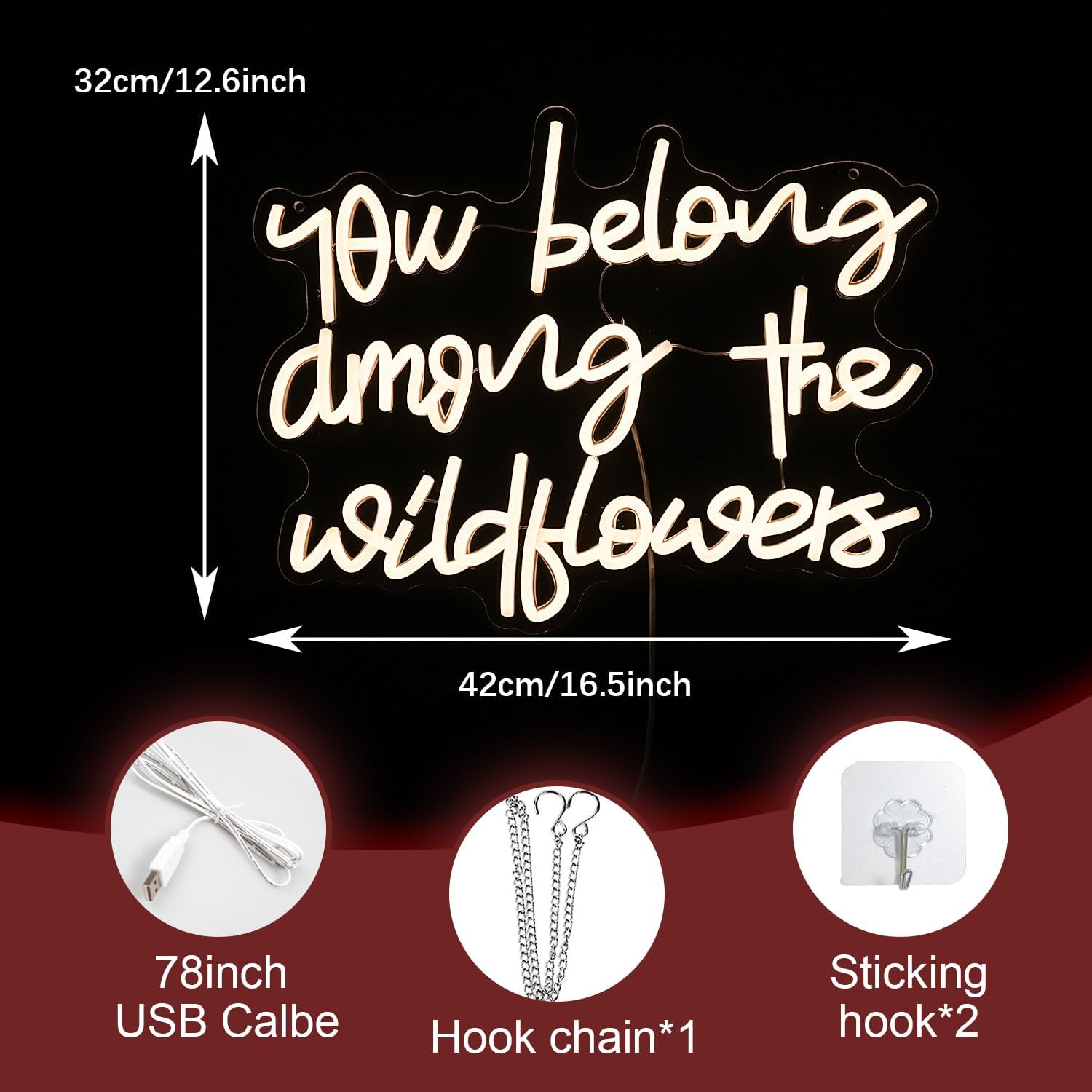 You Belong Among The Wildflowers Neon Sign for Wall Decor Dimmable Warm White LED Letters Neon Light for Living Room Garden Art Wall Neon Decor Personzalized Gift(16.5 * 12.6In)