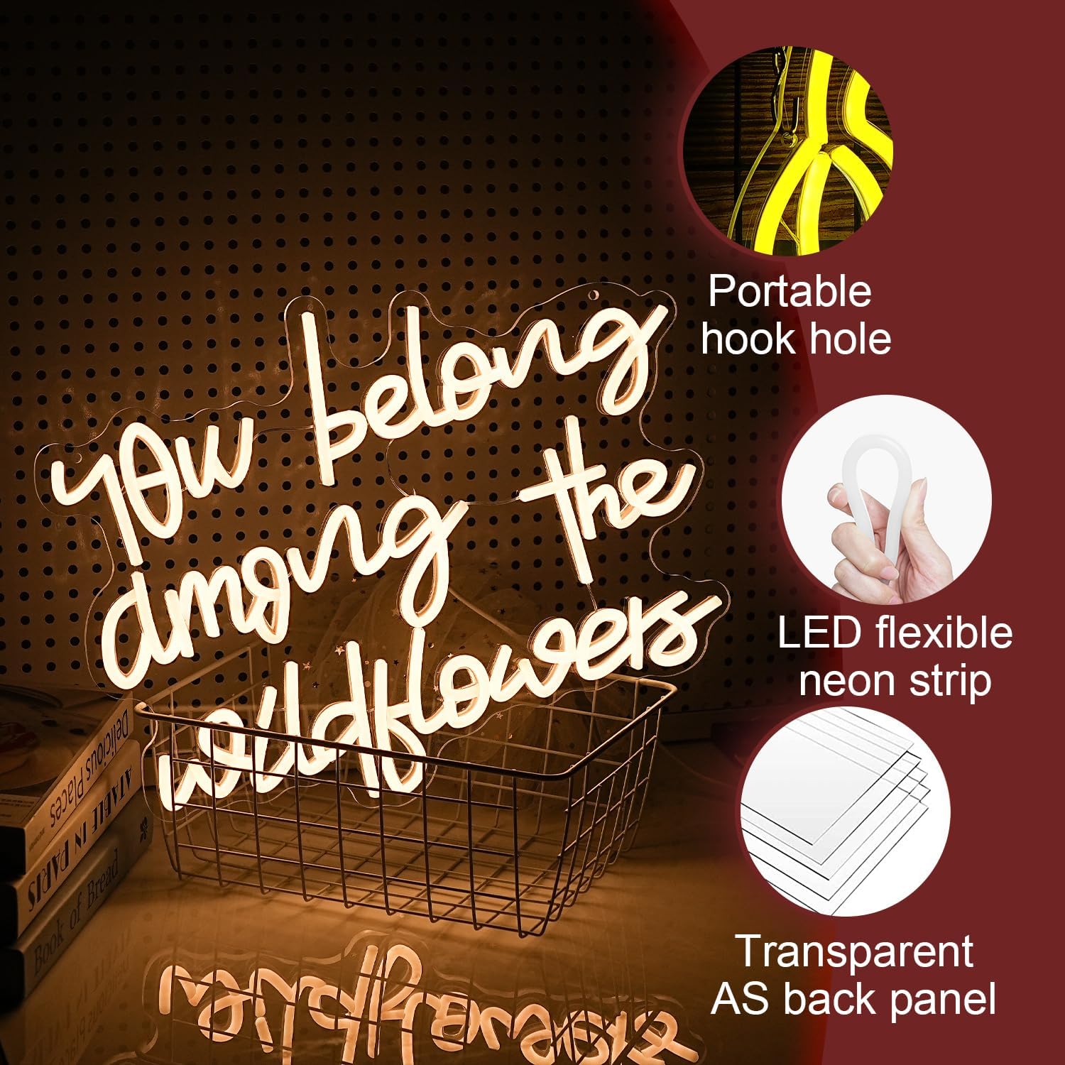 - Letter Neon sign: You belong among the wildflowers, symbolizing your resilience, bravery, perseverance, and independent growth. It is a symbol of sunshine and positivity.